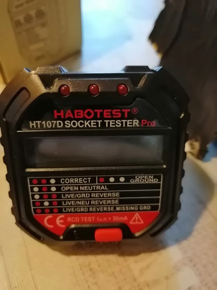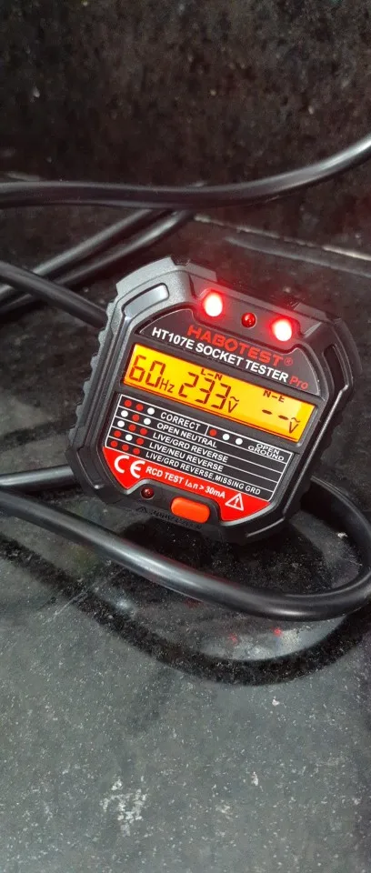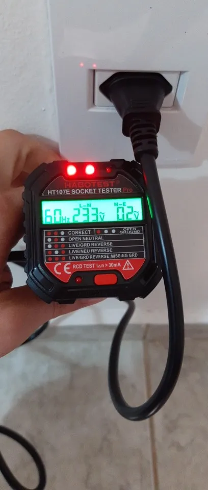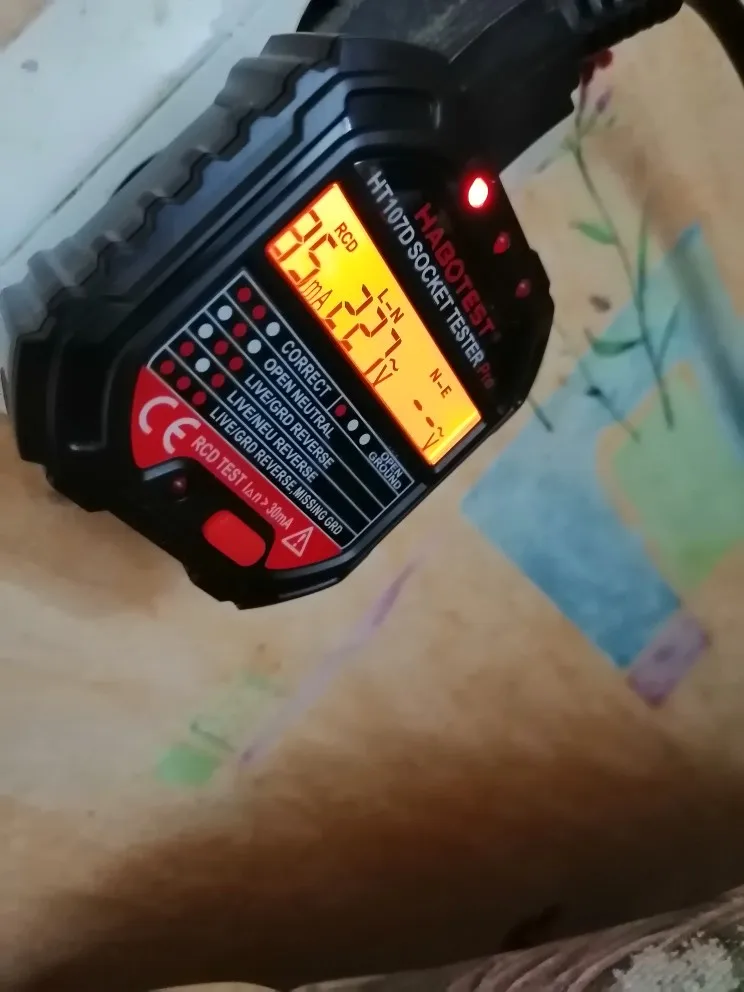 Изделие работает неправильно! Напряжение отображается как 184 в вместо 230 В Все светодиоды сообщают об ошибке. В проводке нет ошибок! Тест RCD ничего не делает.