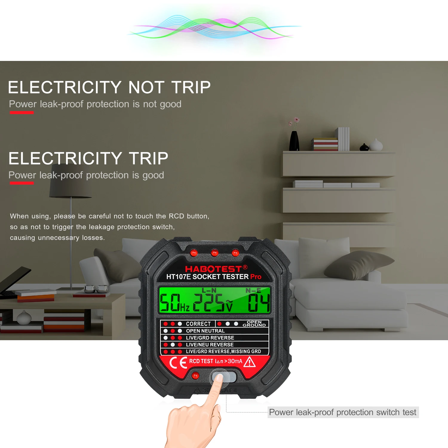Тестер розеток HABOTES GFCI 90-250 В, автоматический детектор полярности электрических цепей