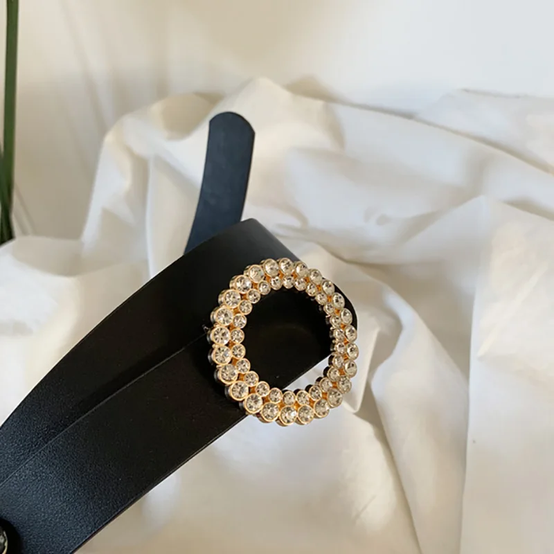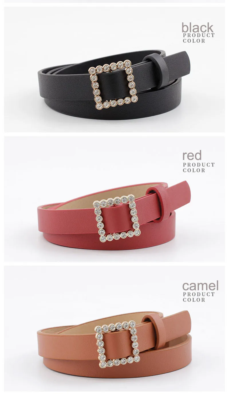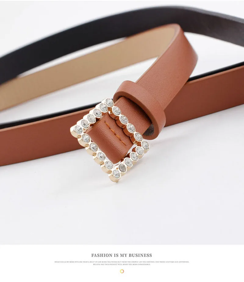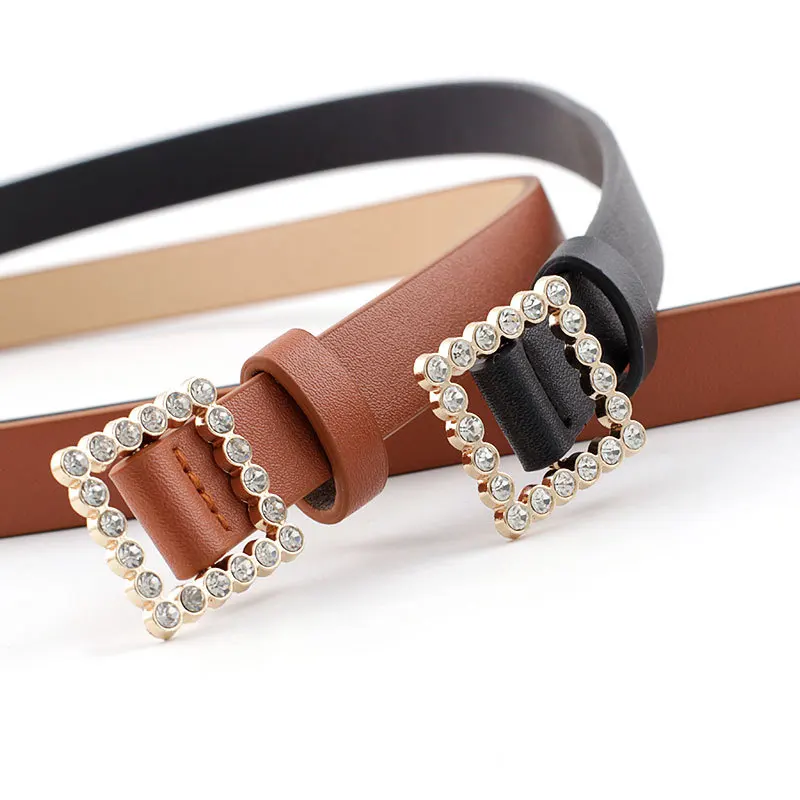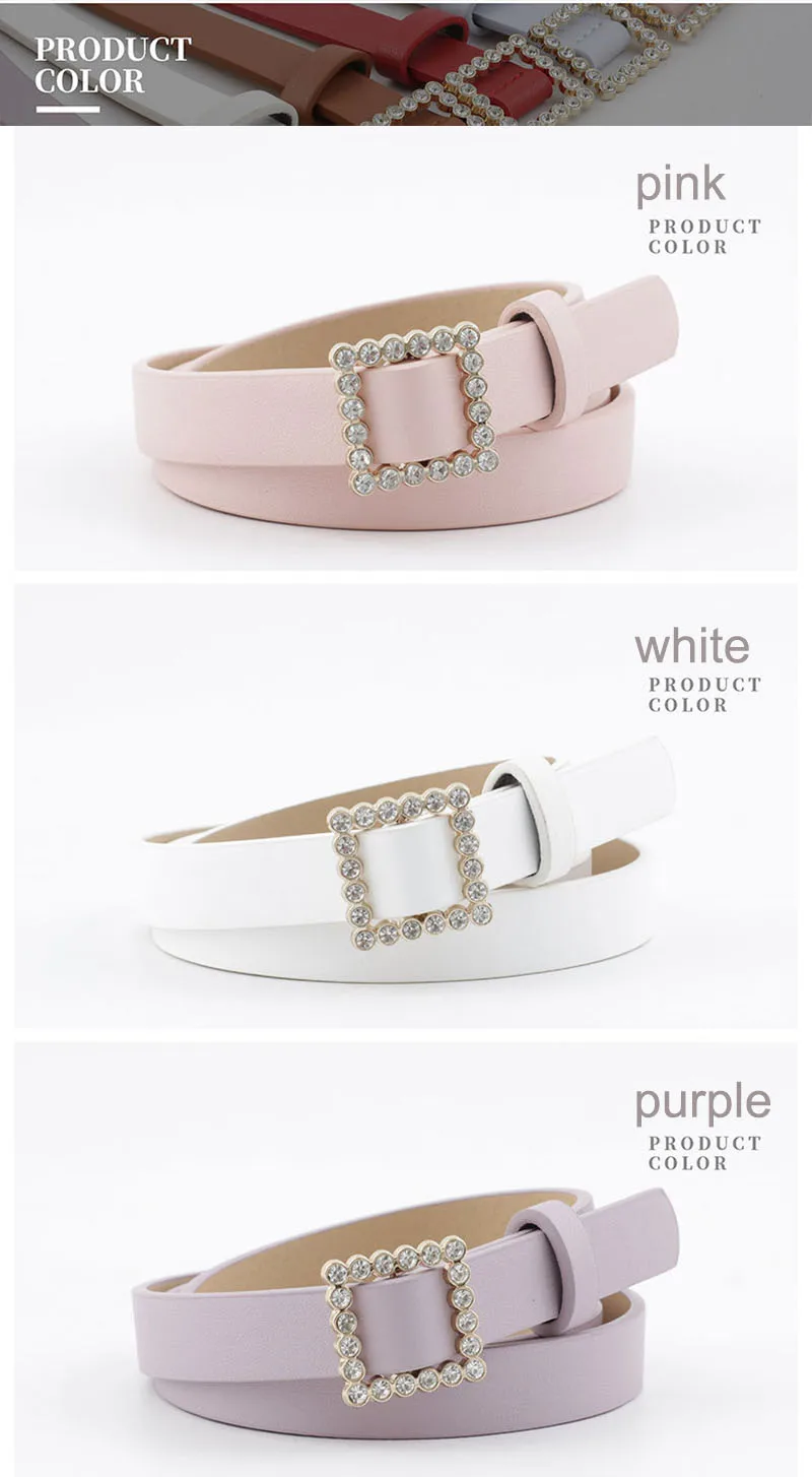 Ремень женский из искусственной кожи, люксовый брендовый Повседневный Пояс в стиле панк, стразы, с пряжкой, чёрный красный, для джинсов, штанов