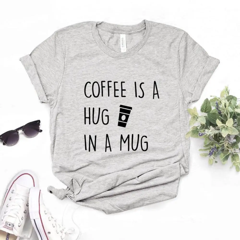 Кофе-это Hug в кружку с принтом женская футболка с коротким рукавом и круглым вырезом, Свободная Женская футболка женская модная футболка верхняя одежда Mujer