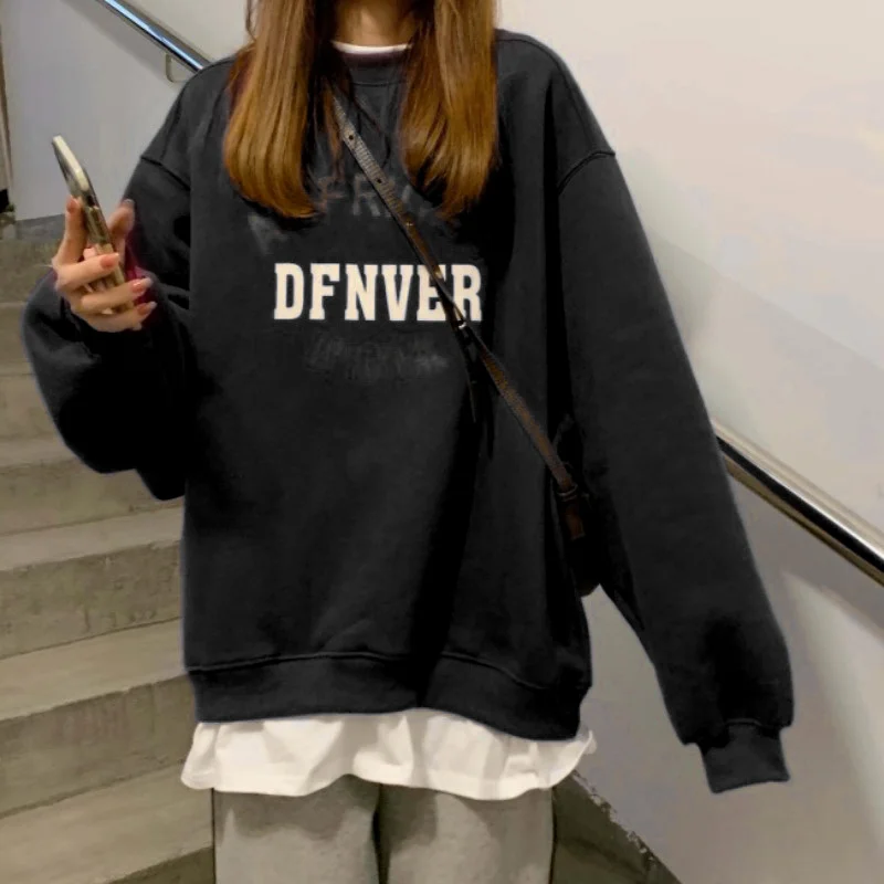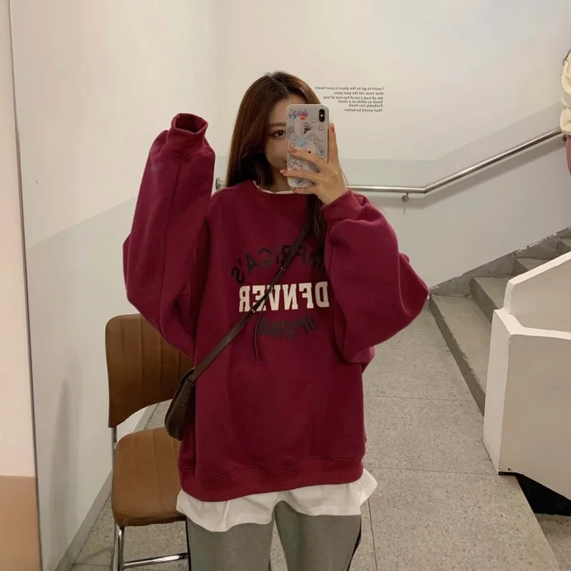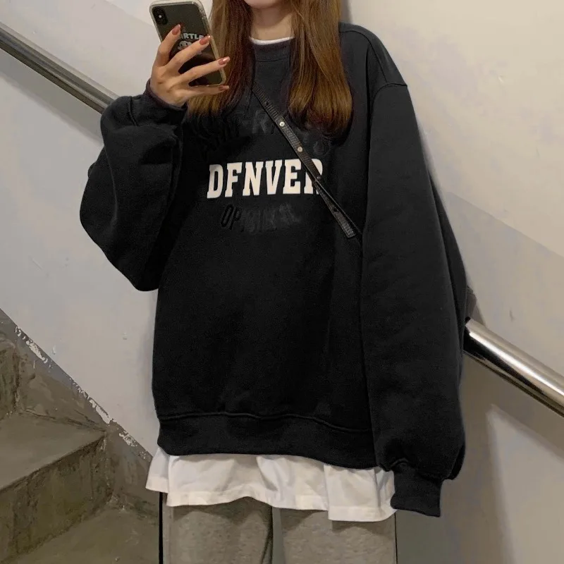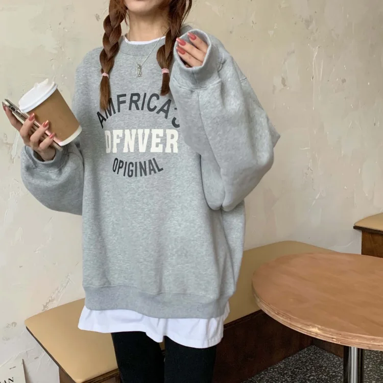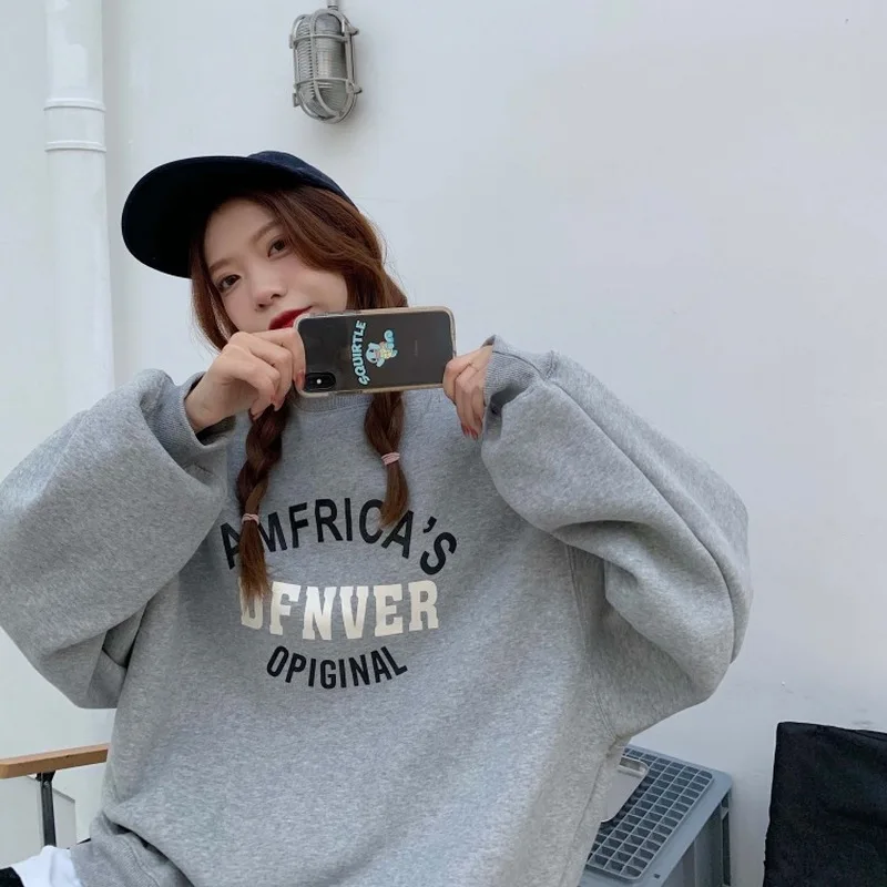 Толстовка Для женщин свободные мягкие большого размера с принтом букв Harajuku с О-образным вырезом для Для женщин s кепки, кепки в стиле поддельные Двойка корейский стиль Хай-стрит, Новинка