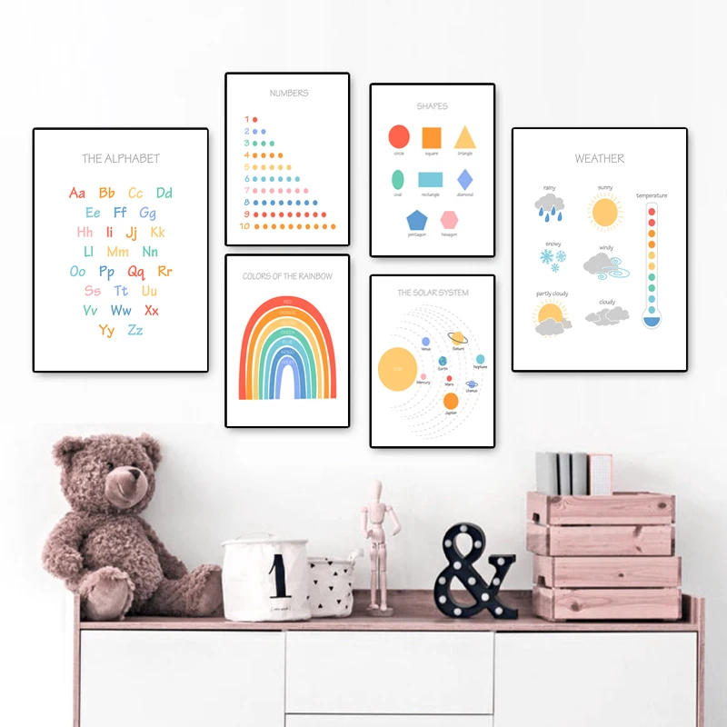 Детский Настенный художественный Декор развивающие печати учебный Плакаты Спальня театр Homeschool дошкольного Монтессори классный Декор