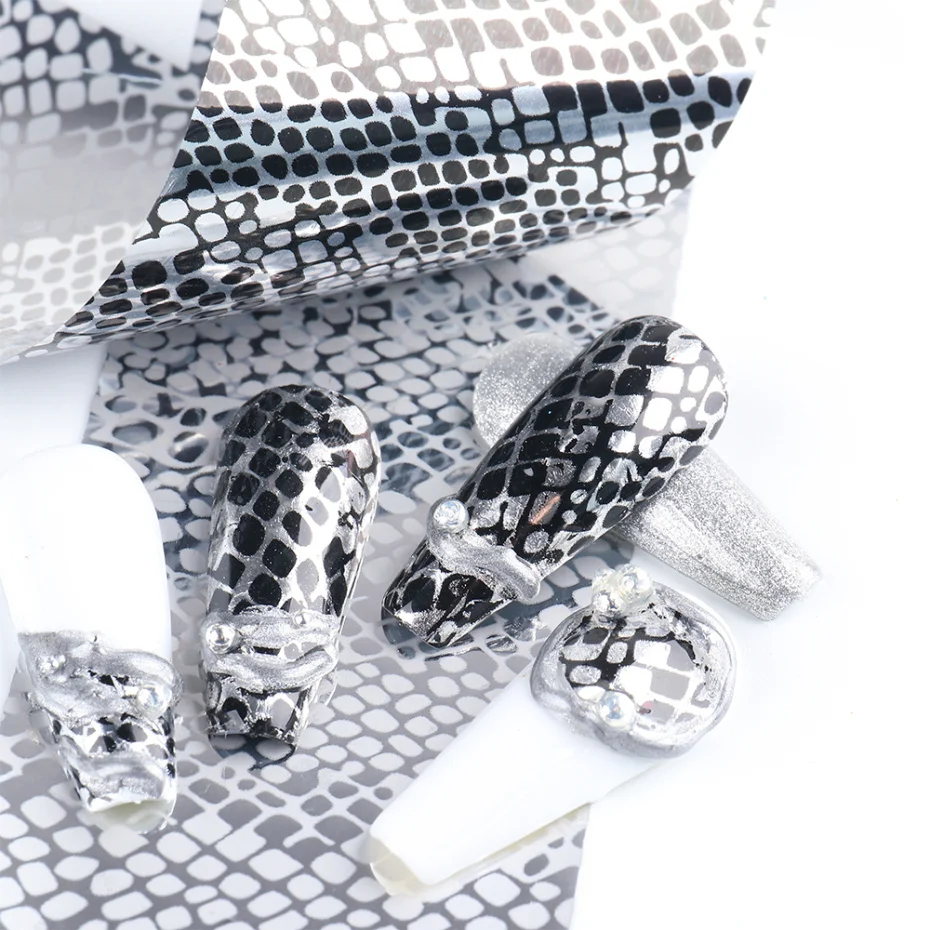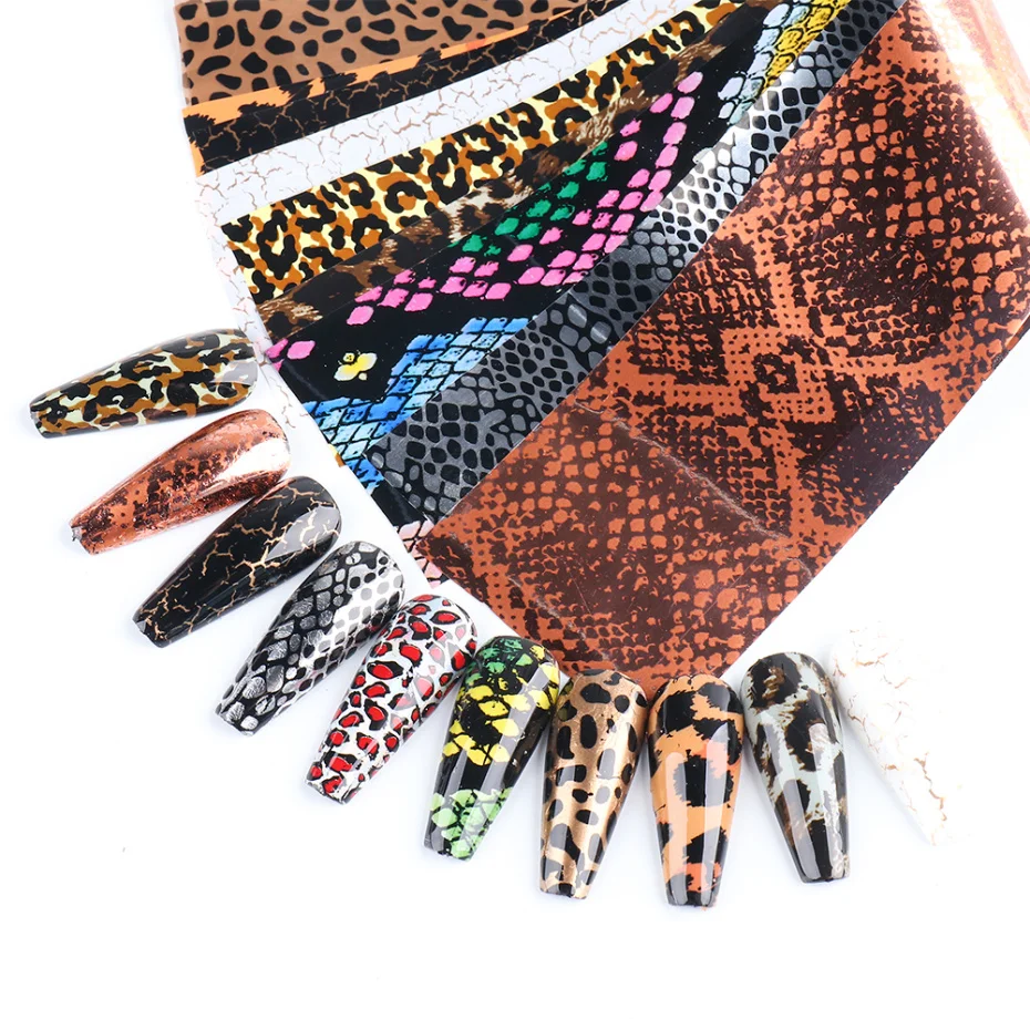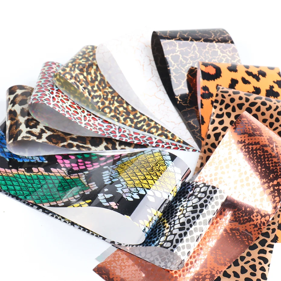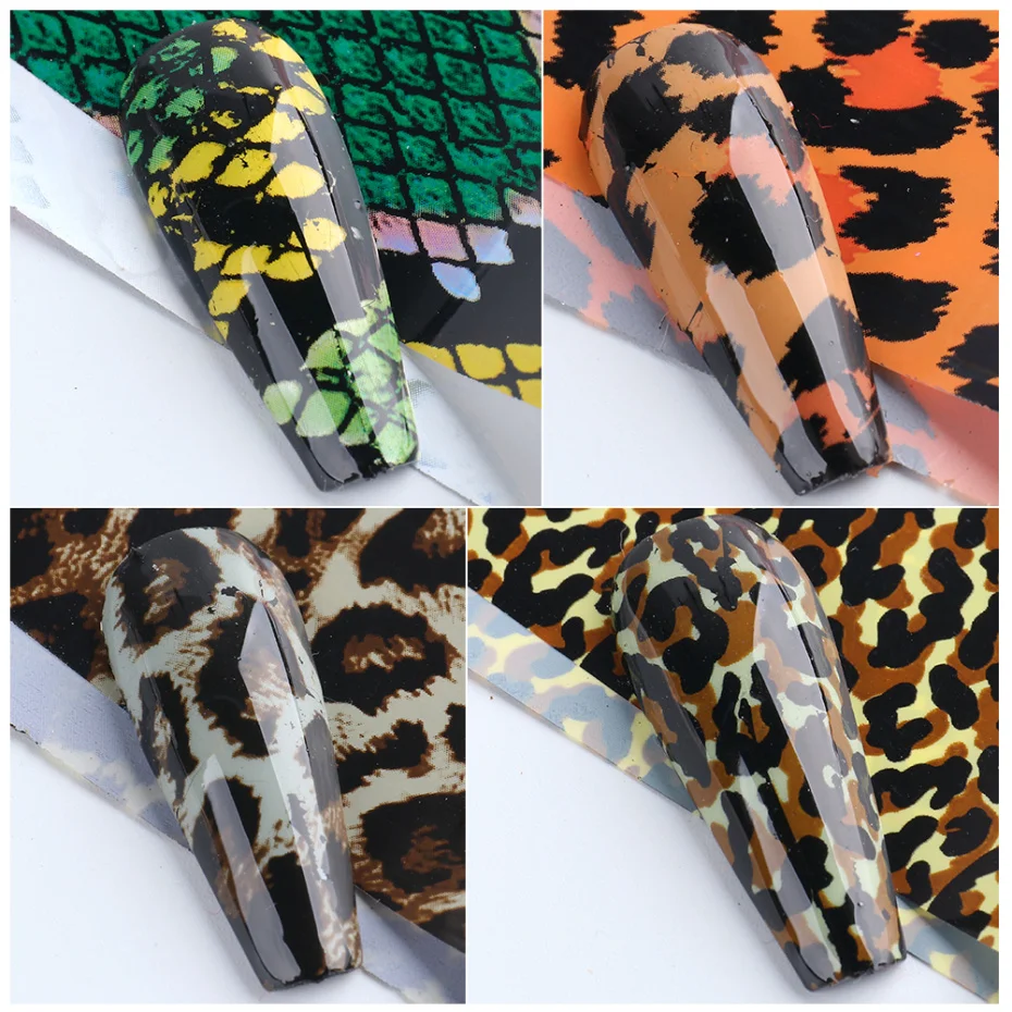Переводные наклейки для ногтей из блестящей бумаги с изображением леопарда змеиной кожи животных