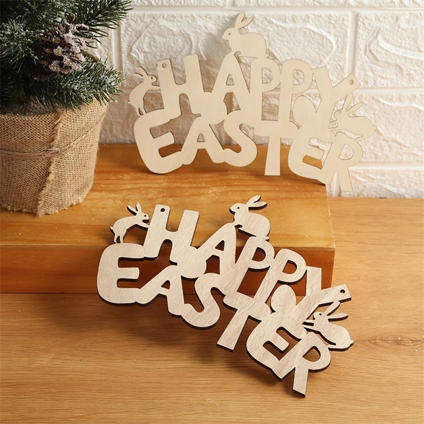 Счастливые пасхальные деревянные с орнаментом в виде кролика подвеска "Кролик" Гирлянда пасхальные украшения для дома Счастливой Пасхи поделки декор