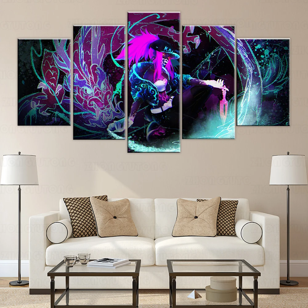 Модульная Картина на холсте для домашнего декора, 5 шт., Akali KDA, Лига Легенд, LOL, картина, плакат на стену для дома, холст