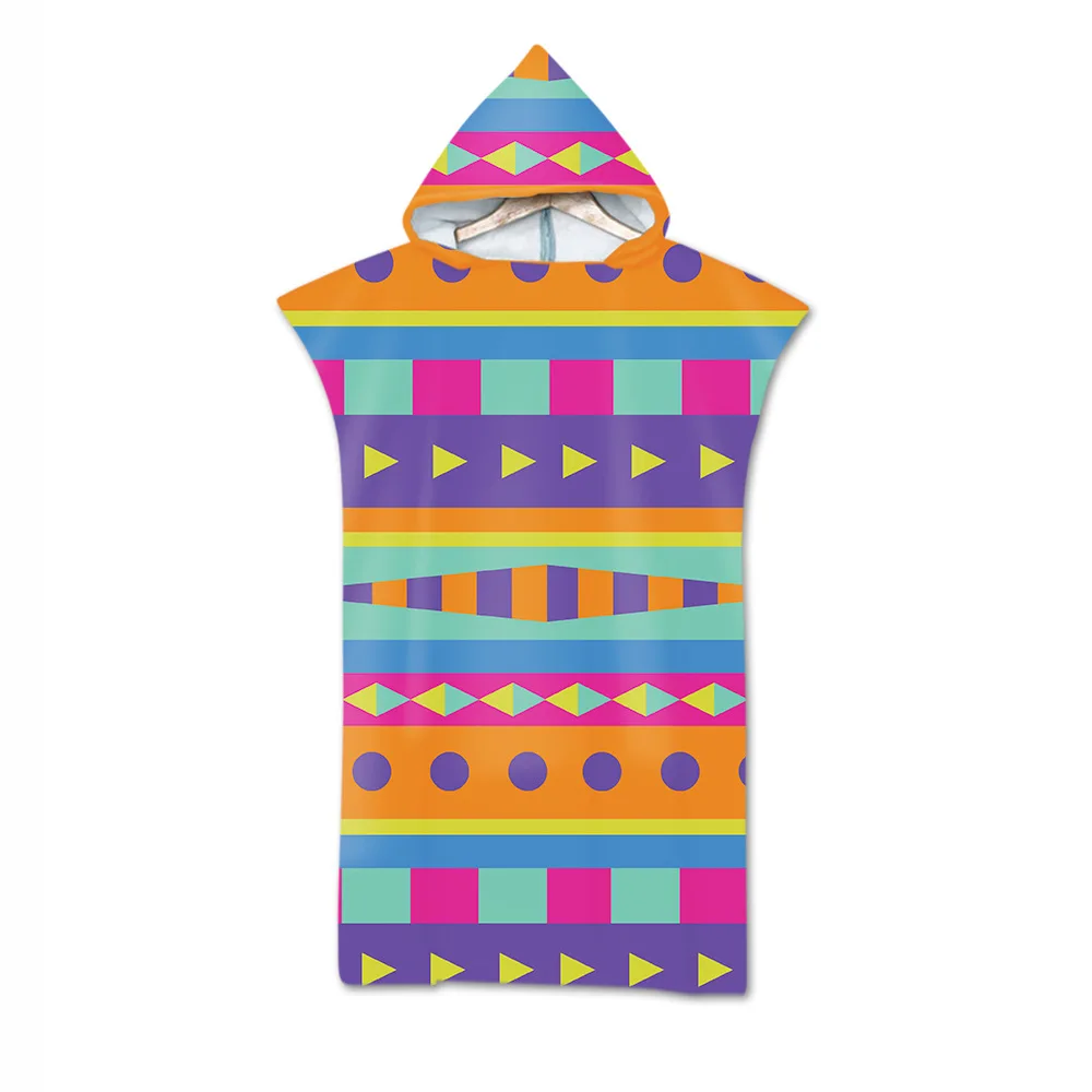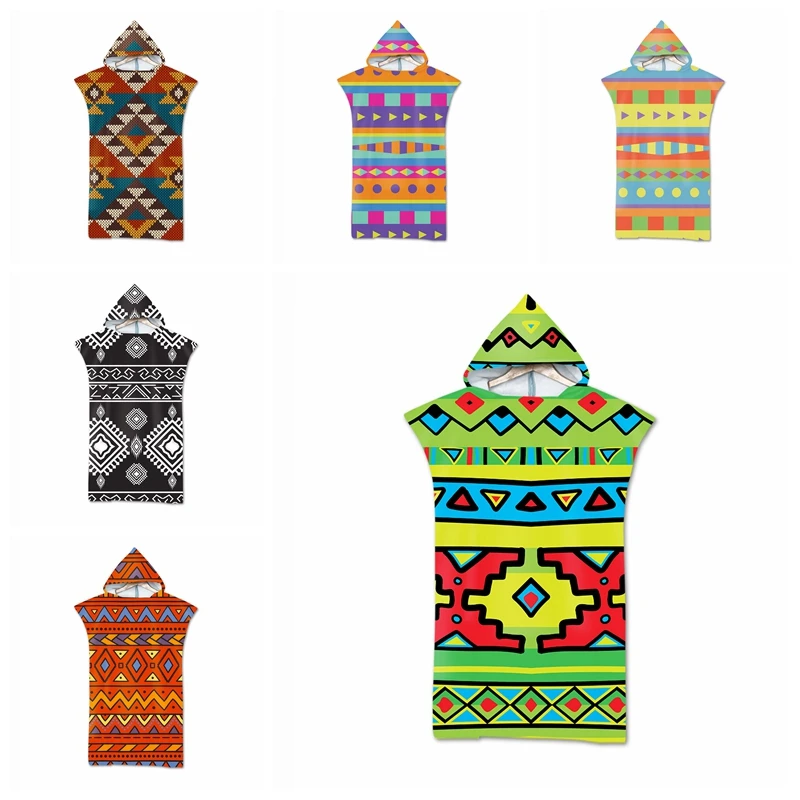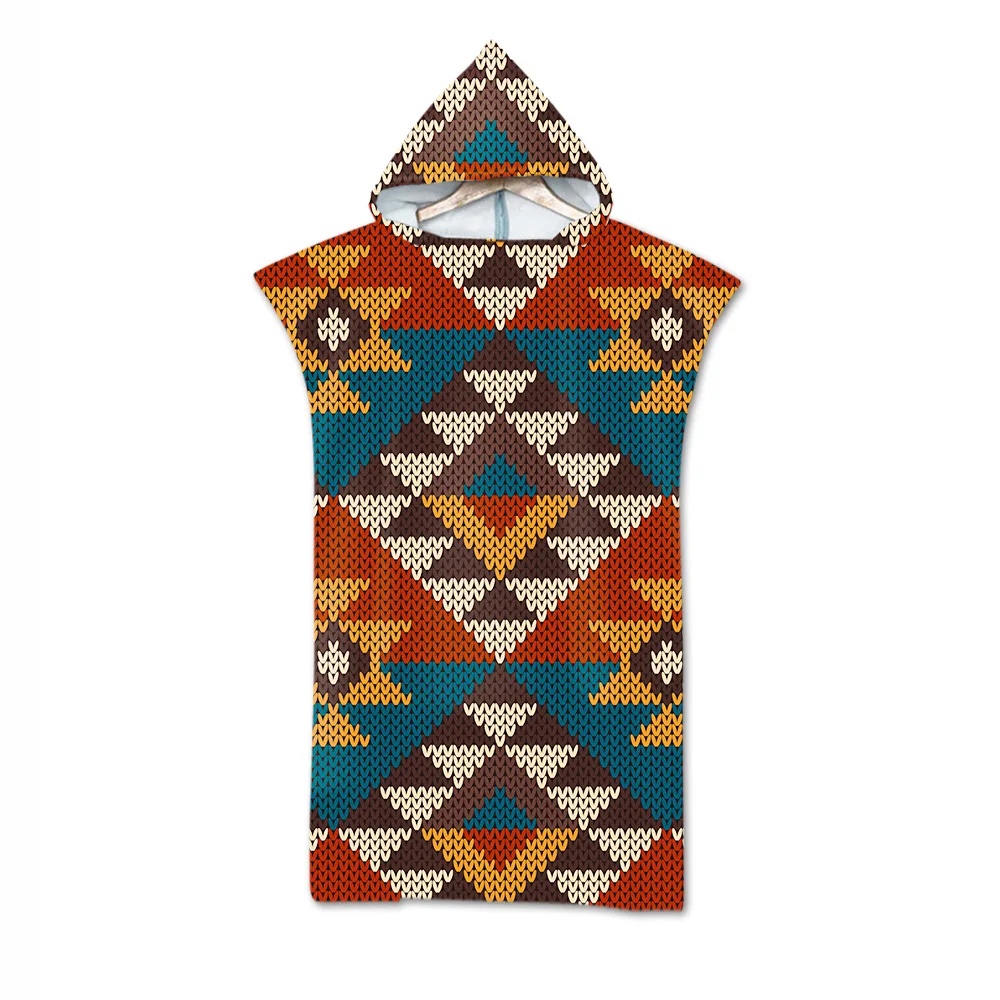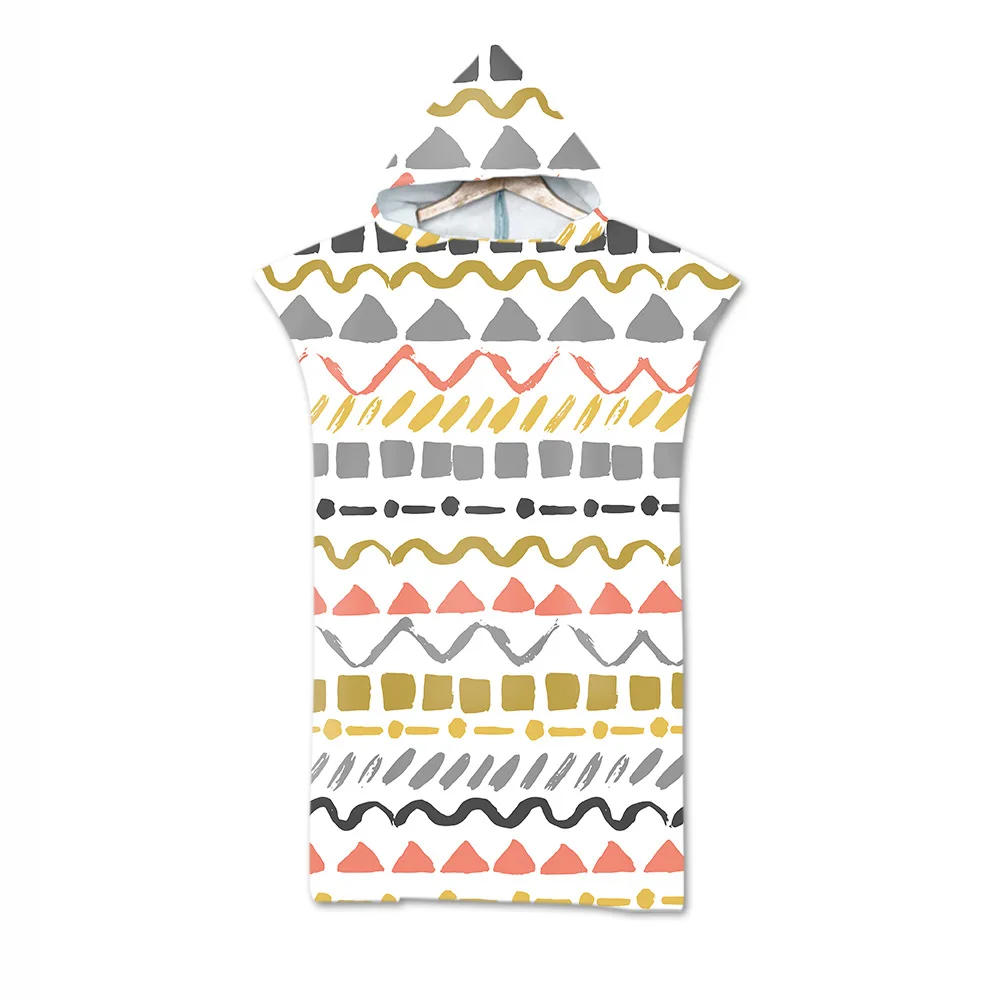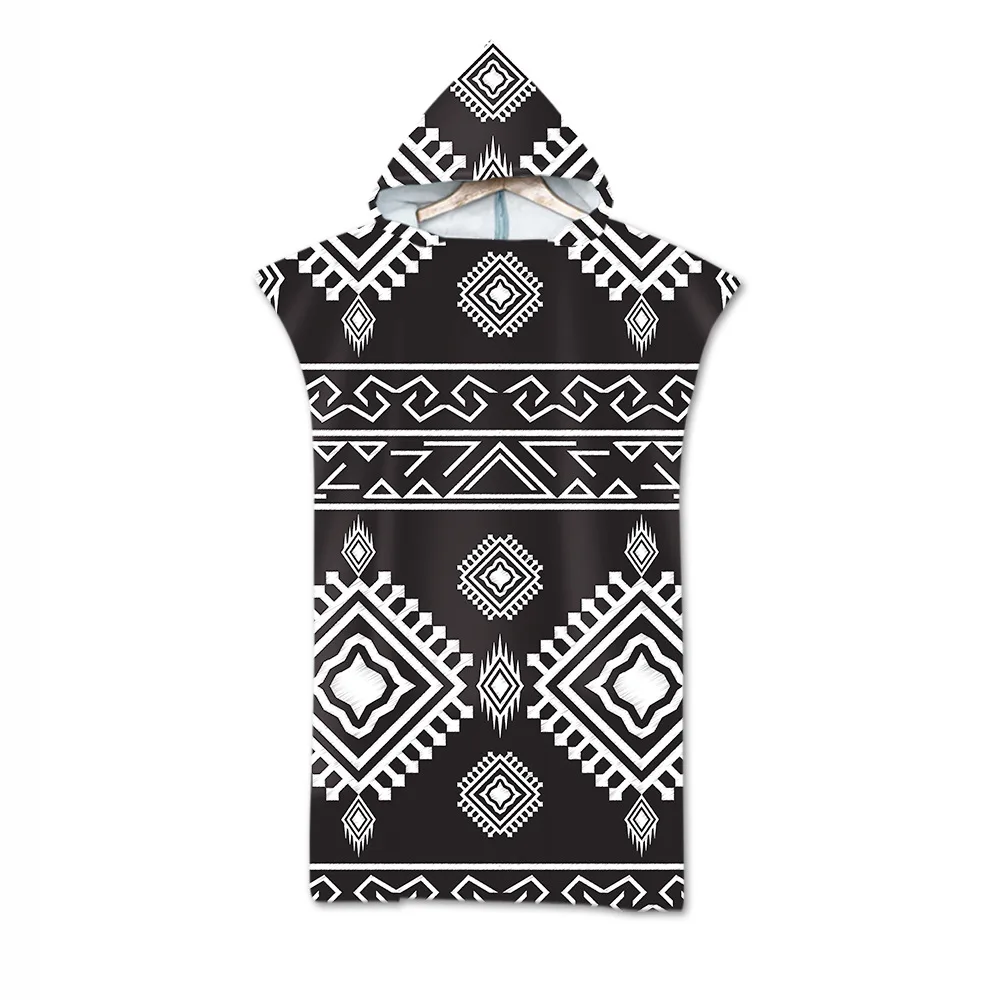 Пляжное полотенце из микрофибры, с геометрическим принтом, для бассейна, сменный халат, плащ, унисекс, банный халат с капюшоном, пончо для серфинга, полотенце, купальник