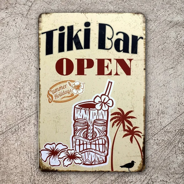 Tiki Bar Open, ретро металлический знактабличка, подарок, барфотоэлемент