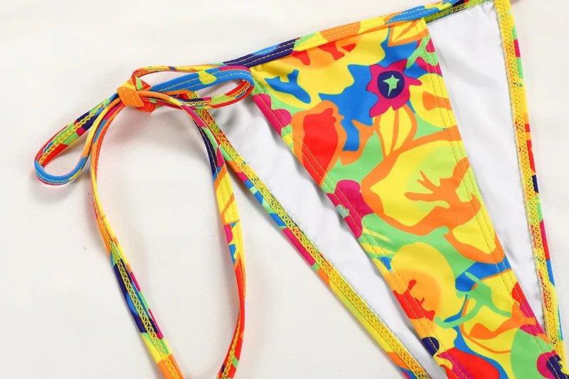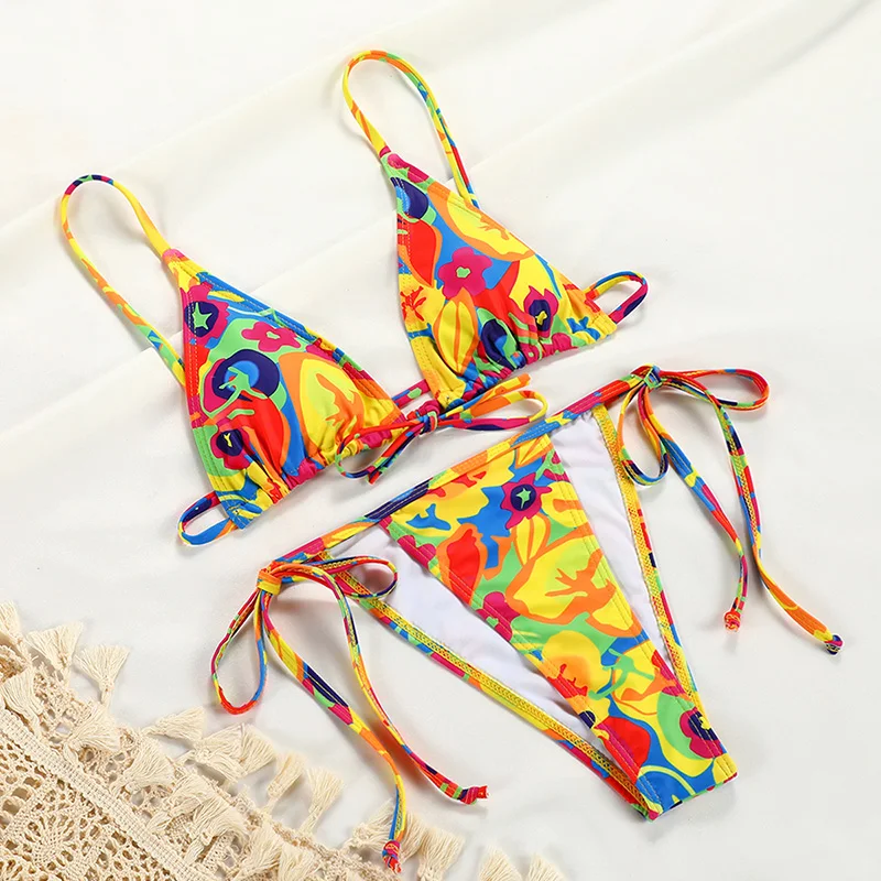 Комплект бикини со стрингами и цветочным принтом, женский купальный костюм, женские бикини, купальник-стринги, сексуальная пляжная одежда