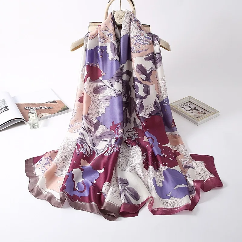 Модный Шелковый шарф с принтом 180x90 см, женская брендовая дизайнерская шаль, женская большая Пашмина, длинный фуляр, бандана, женские зимние шарфы