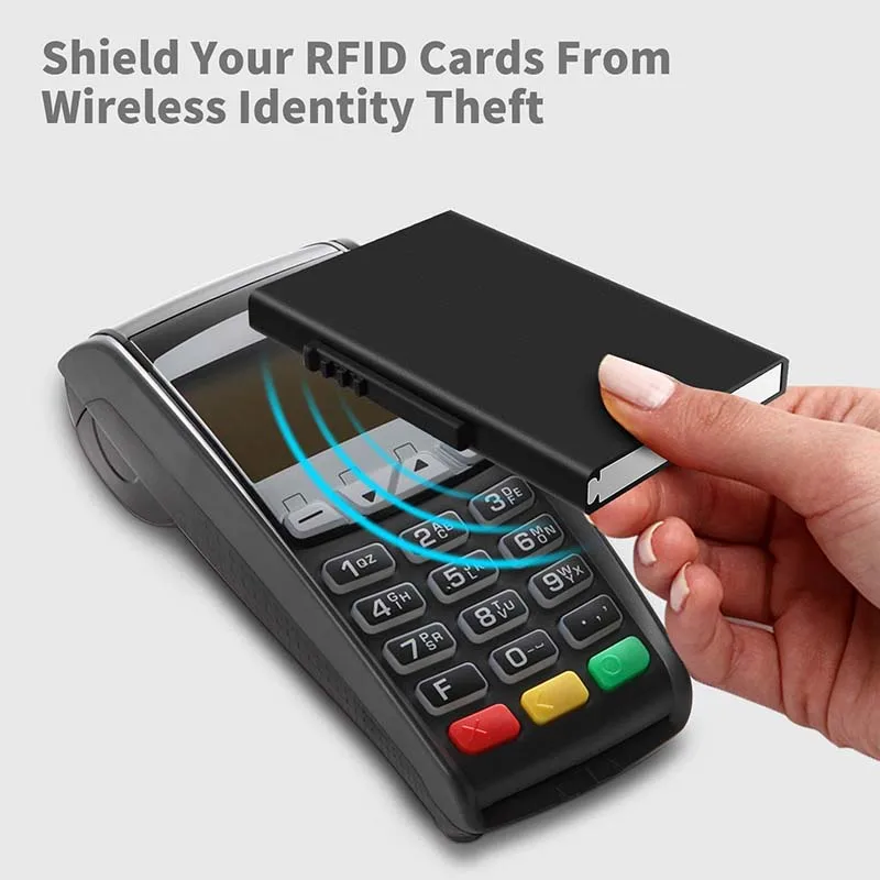 С функцией блокировки RFID тонкий кошелек Кредитная Держатель для карт алюминиевый Для мужчин Для женщин Для мужчин всплывающее окно Id Бизнес имя карты Чехол кошелек Анти-Вор Защитная крышка