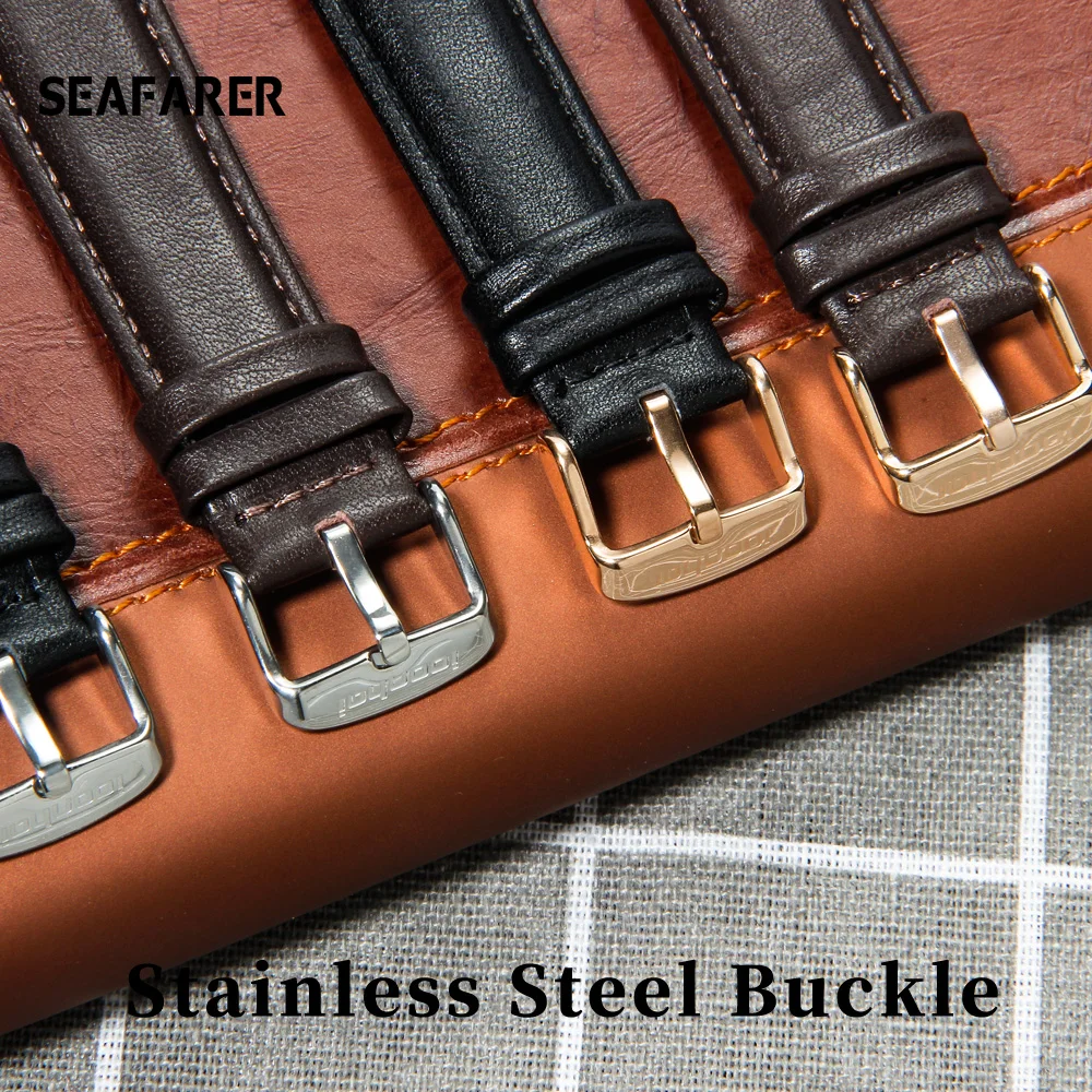 Ремешок для часов SEAFARER из натуральной кожи, черный браслет для ...