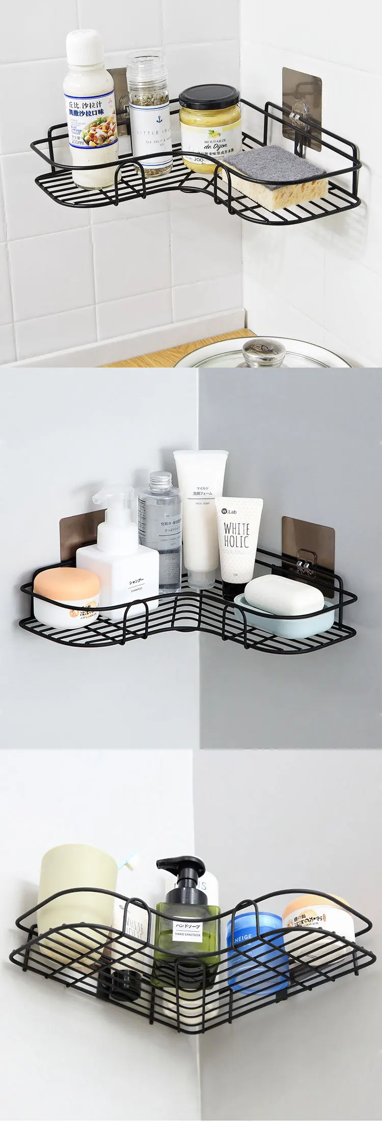 Угловая рама для ванной и кухни, душевая полка, железная полка для хранения шампуня, держатель с присоской