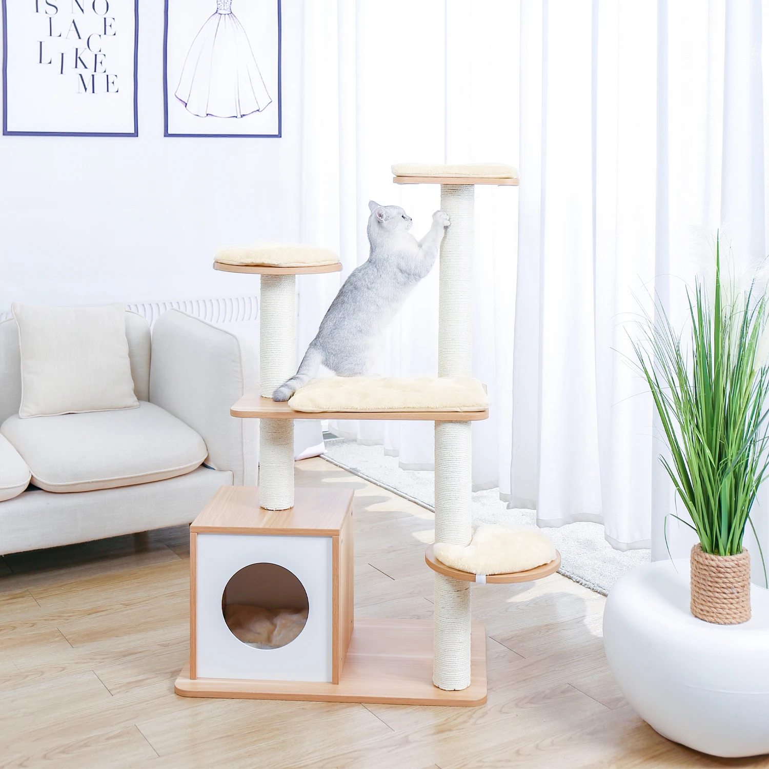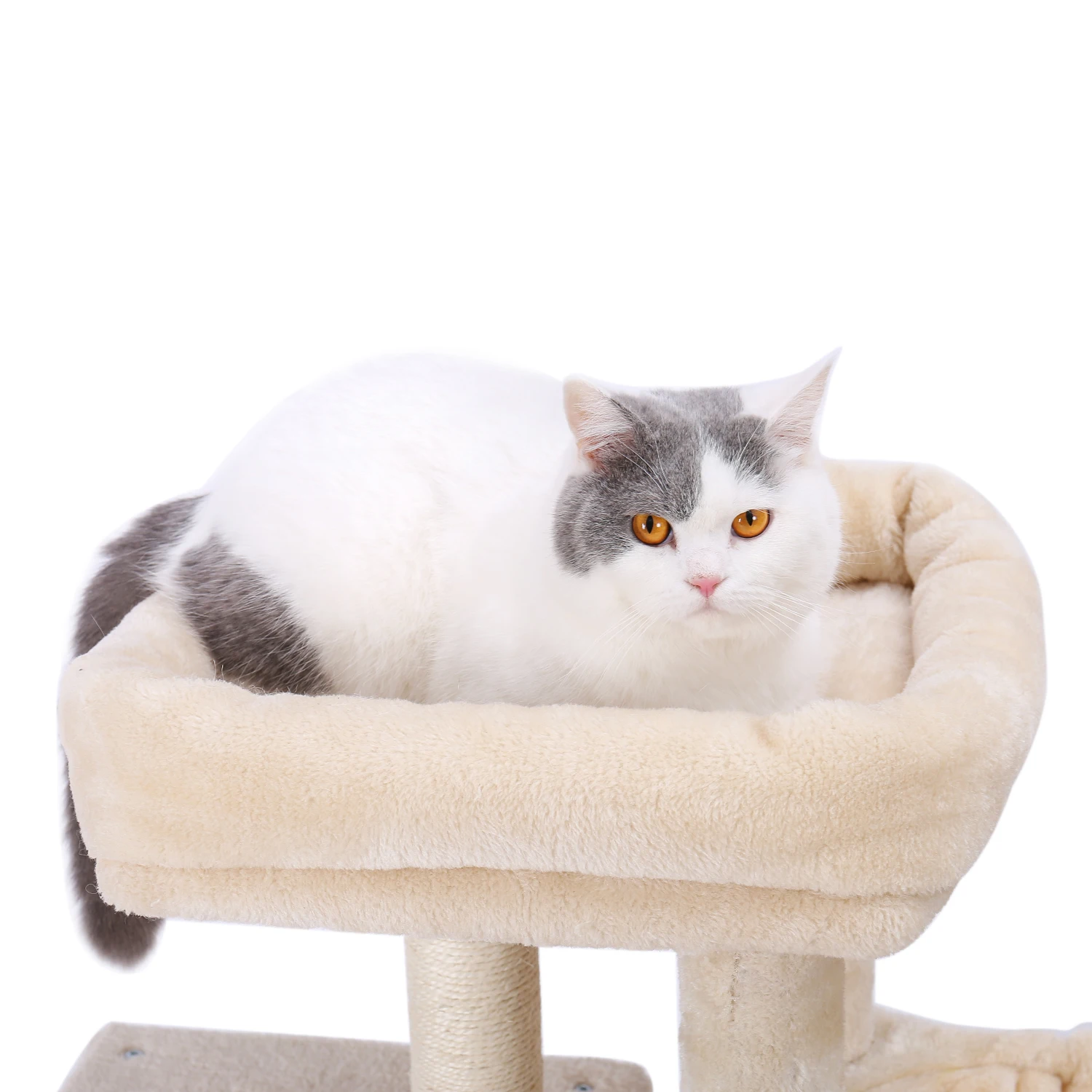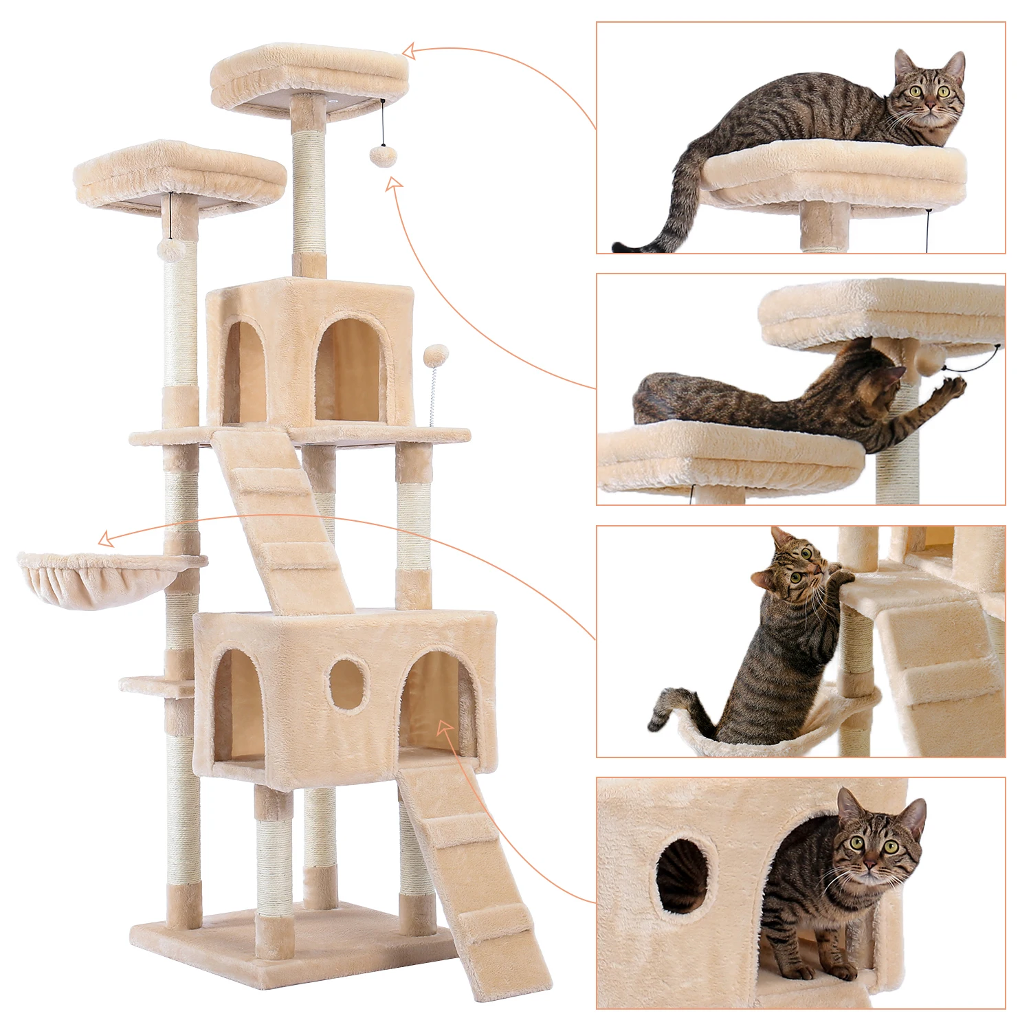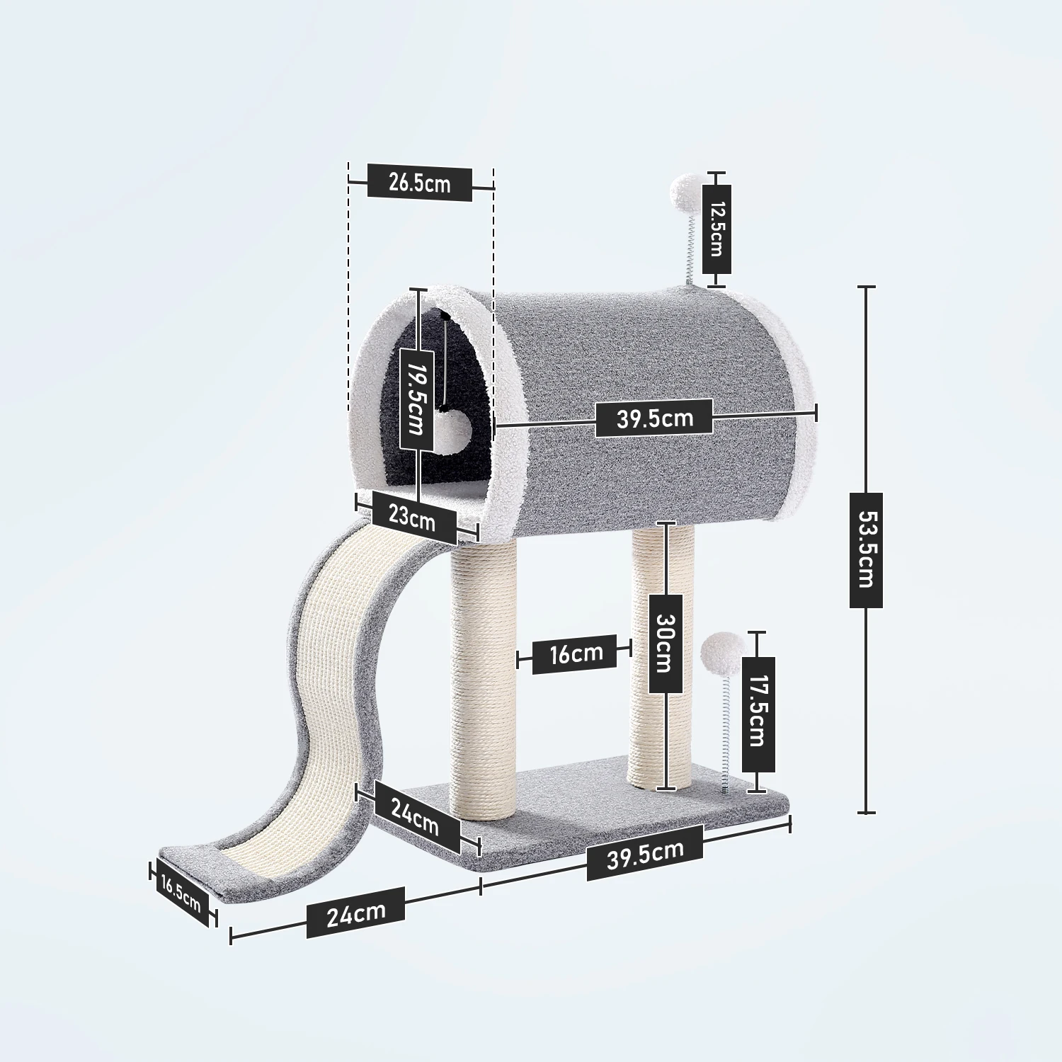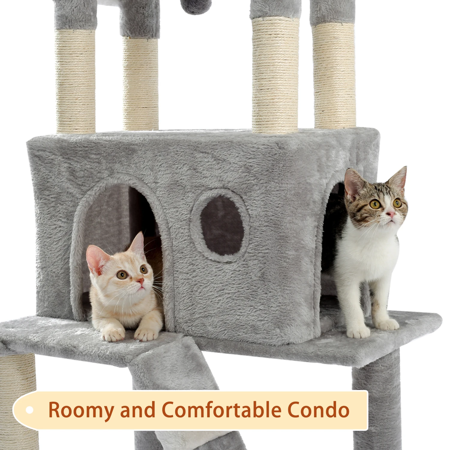 Кошачье дерево, многоуровневая башня с когтеточками, кошачьи столбы, Сизалевые столбы, гамак, платформа для прыжков с шариком, серого цвета