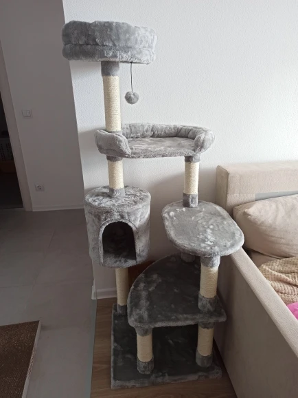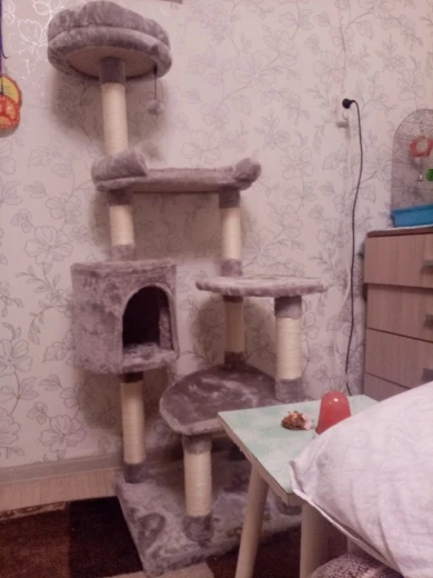 Хороший комплекс, доставка до двери, получила через 4 недели, комплектующие для сборки прилагаются, моим котам понравился)))