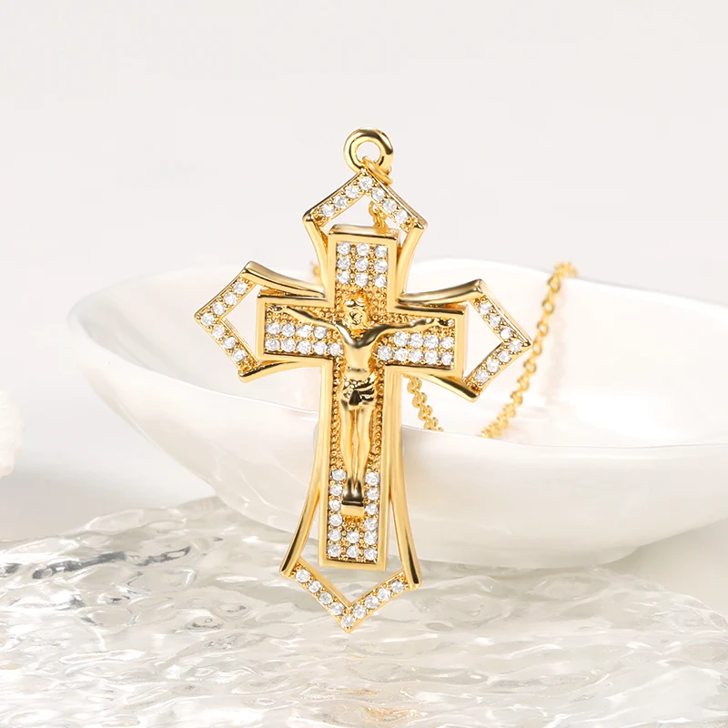 Vntage крест Распятие Ожерелье Подвеска с компасом для мужчин и женщин Золотая молитва с Иисусом цепочка до ключицы ювелирные изделия оптом
