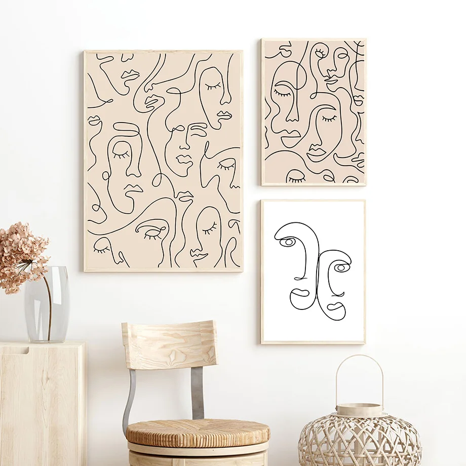 Абстрактные Фигурки лица, линии тела, формы, настенное искусство, х...
