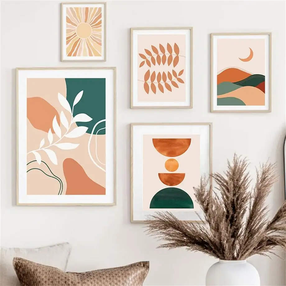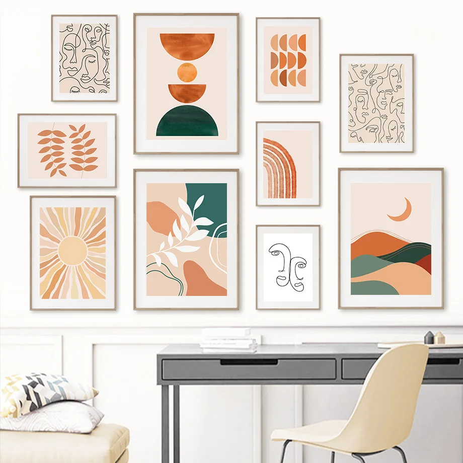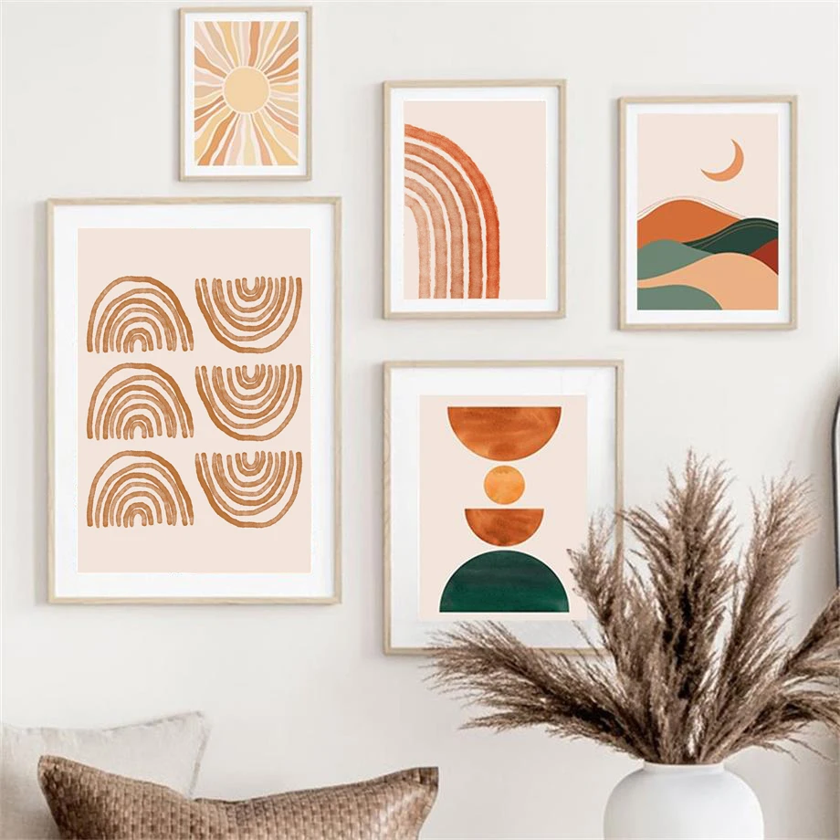 Абстрактная Картина на холсте в стиле бохо, настенные постеры с изображением солнца, радуги, Листьев, девушек, линий, для декора гостиной