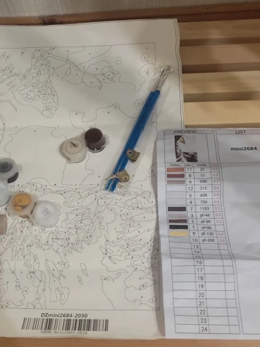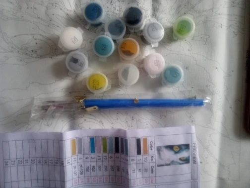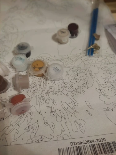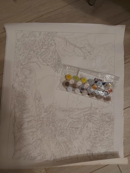 Классная картинка, уже начала раскрашивать, детальки мелкие иногда сложновато бывает красить, в комплекте есть все необходимое, краски хорошие, одна баночка всего была густой я добавила туда капельку воды и всё стало отлично. Я очень довольна покупкой спасибо продавцу ❤️