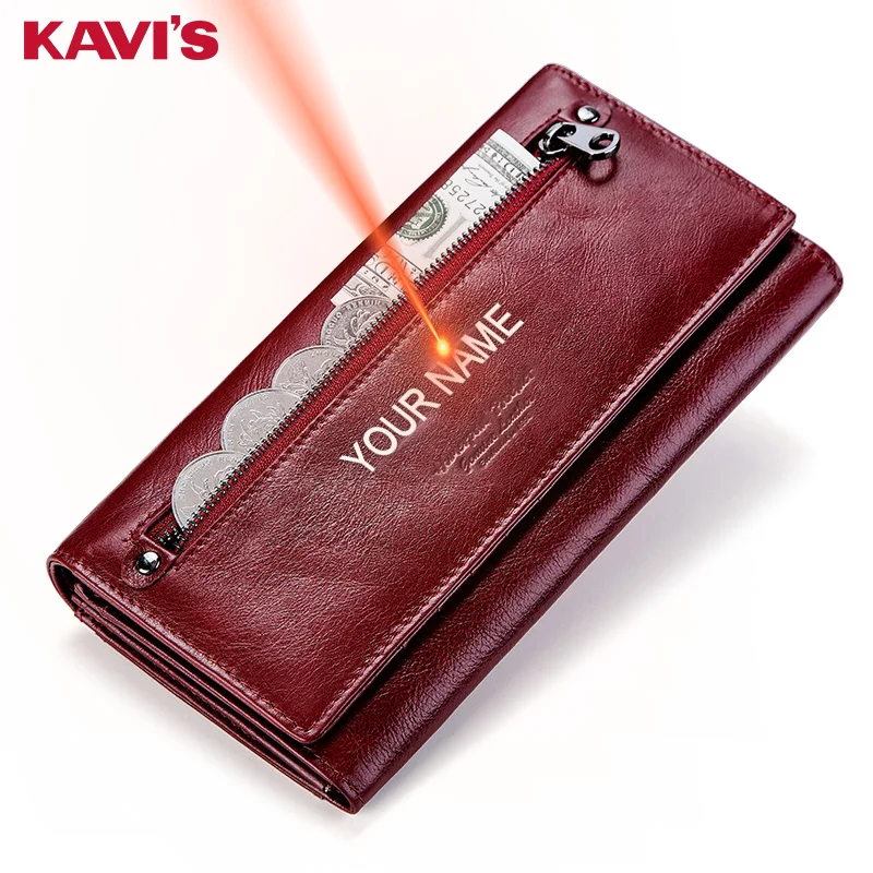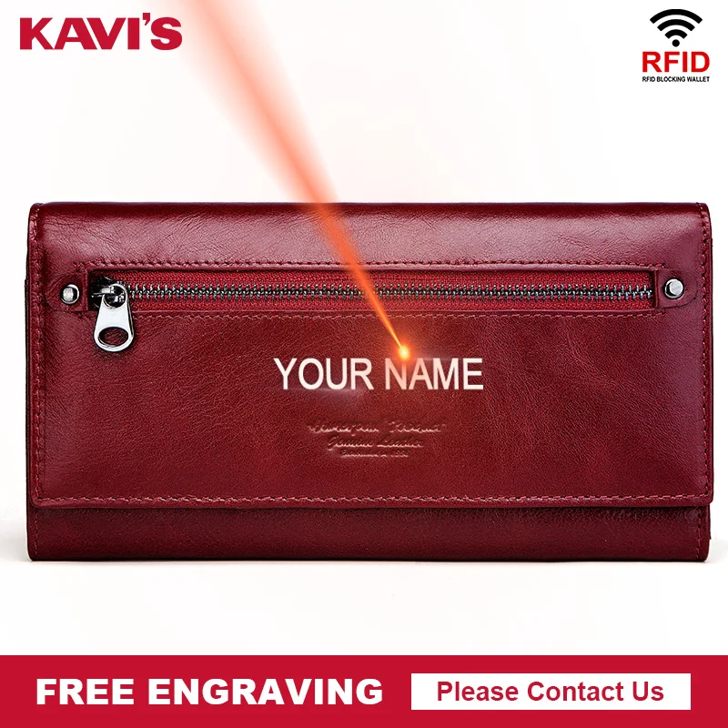 Женский кошелек KAVIS из натуральной кожи с бесплатной гравировкой,...