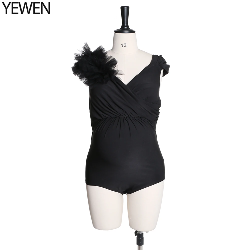 Боди для беременных, черного цвета, с V-образным вырезом, цветочным принтом, эластичная ткань