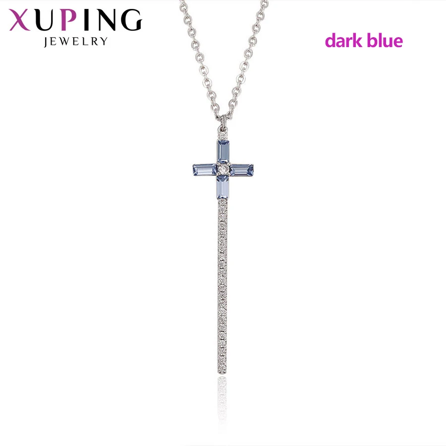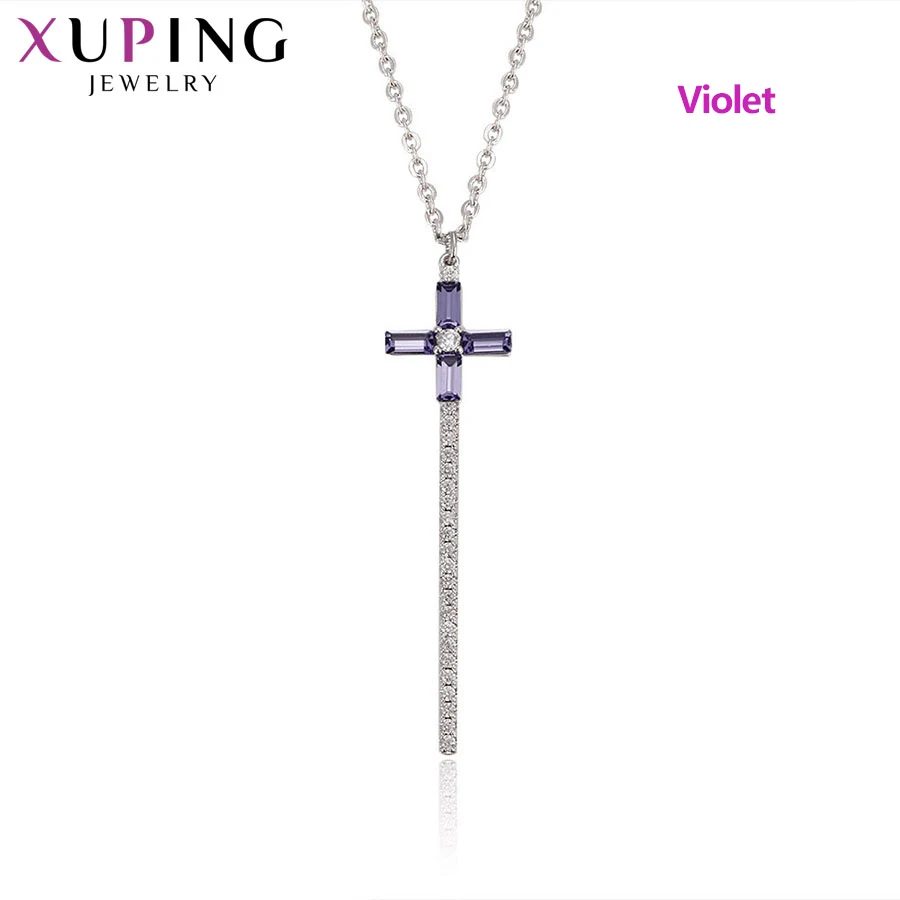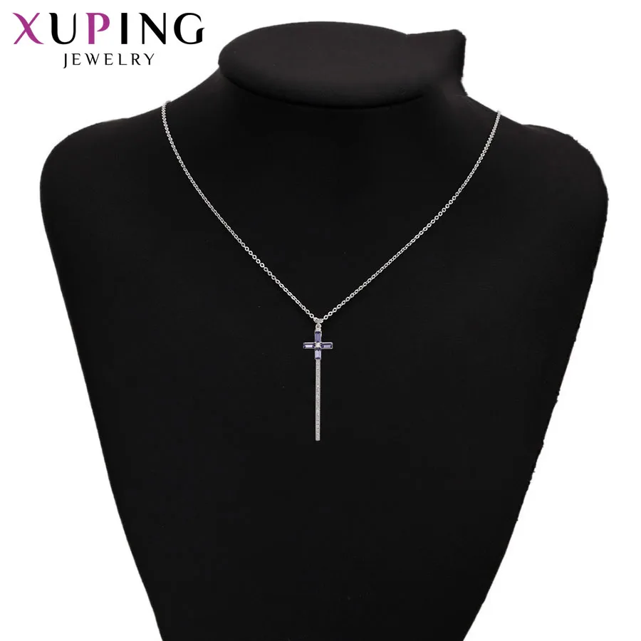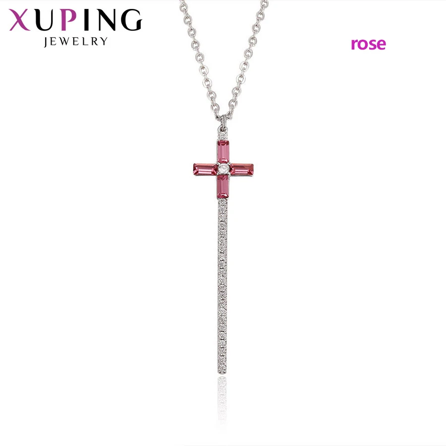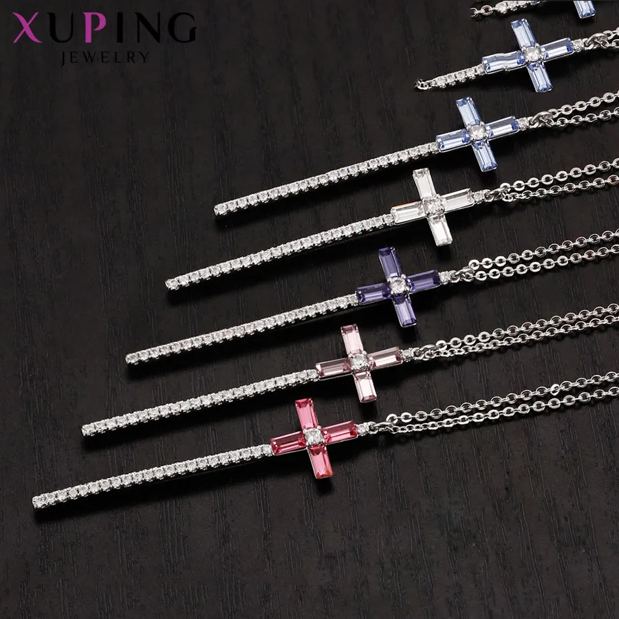 Xuping Модная бижутерия в европейском стиле женское ожерелье в форме Креста с разноцветными кристаллами с родиевым покрытием 43456