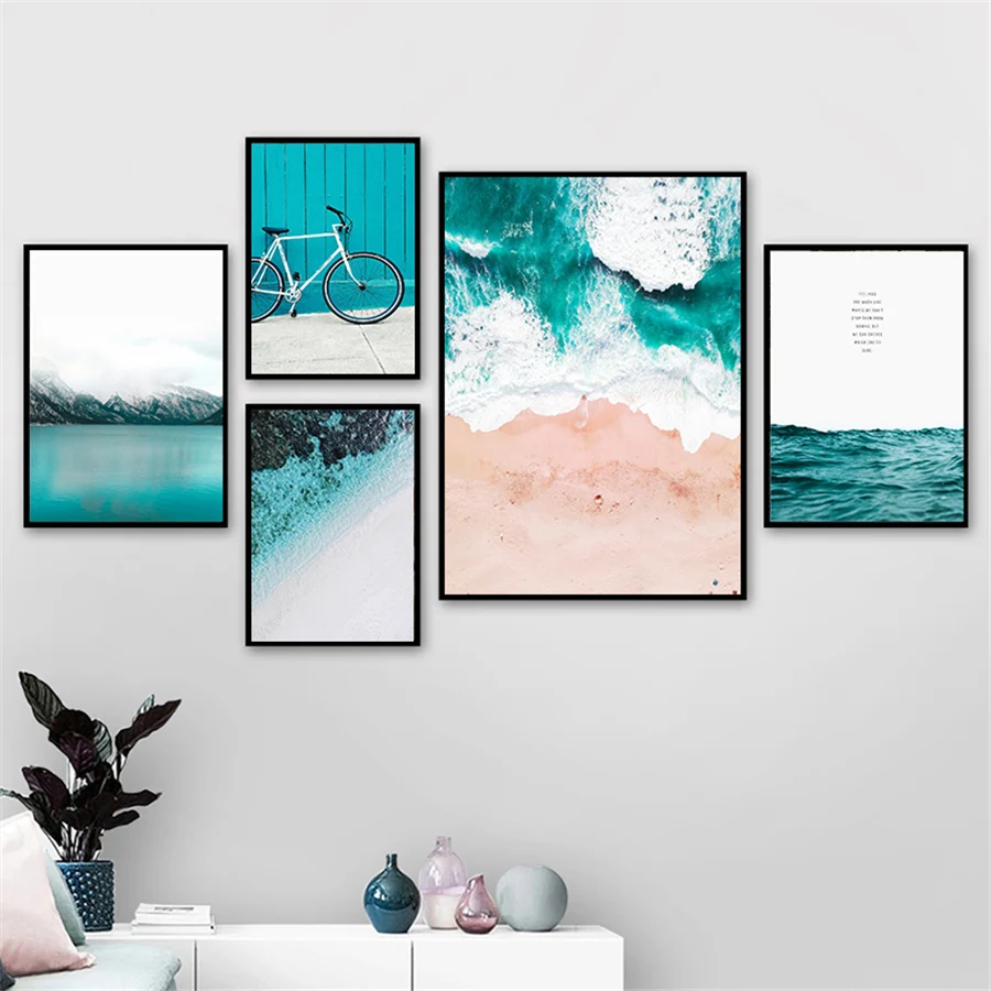 Морские волны, синее море, пляж, настенный плакат, морской пляж, пейзаж, холст, принт, Скандинавская живопись, изображение художественное оформление комнаты
