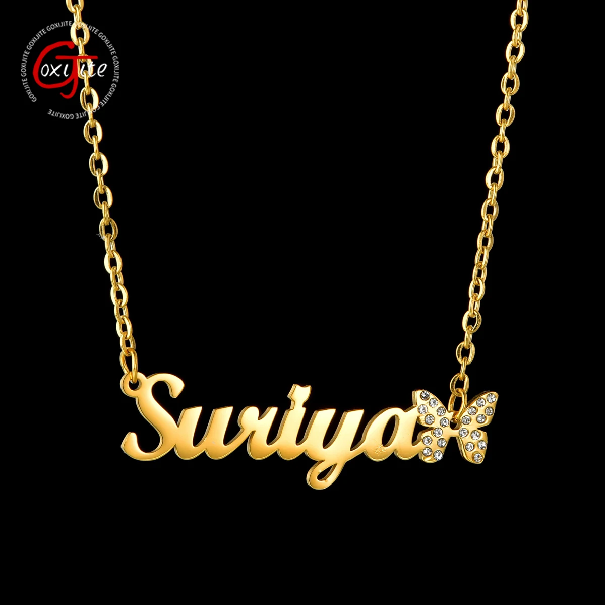 Индивидуальное название Goxijite, ожерелье с бабочкой для женщин, курсивное инициальное название, хрустальный камень, чокер, ожерелье, ювелирные изделия, подарок