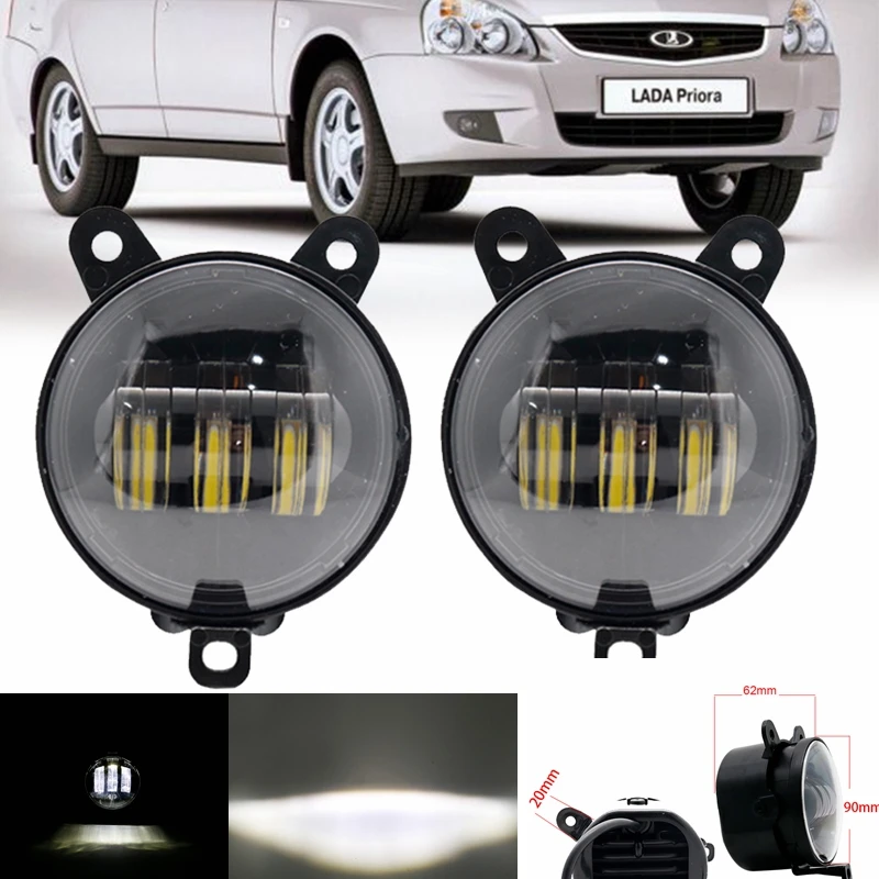 Светодиодные противотуманные фары для Lada Priora, противотуманные фары для других Россия, машины, передние вспомогательные Противотуманные фары 30 Вт, белые ДХО, желтые сигналы поворота, 12 В