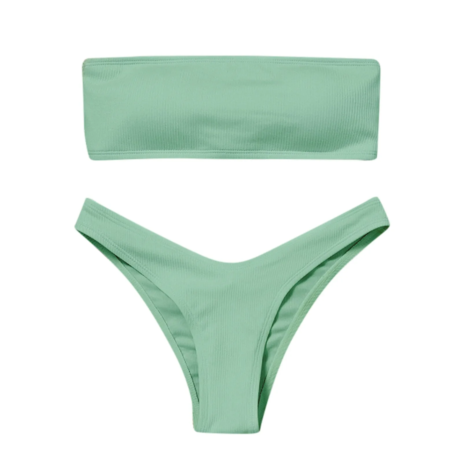 Женский раздельный купальник из двух предметов, пикантный комплект бикини с оборками, купальники с завышенной талией, женское бикини с контролем живота, LW