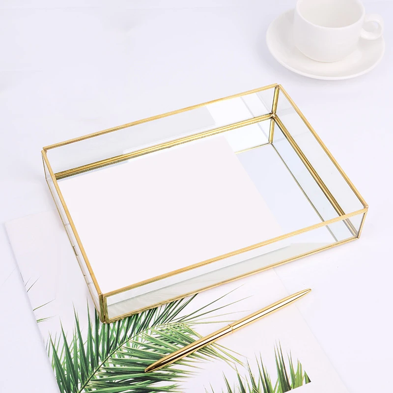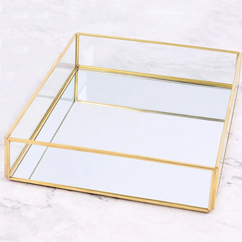 Зеркало с золотым подносом, прямоугольный зеркальный поднос вмещает духи, украшения, косметику, макияж, журнал и многое другое, декоративный поднос для Vani