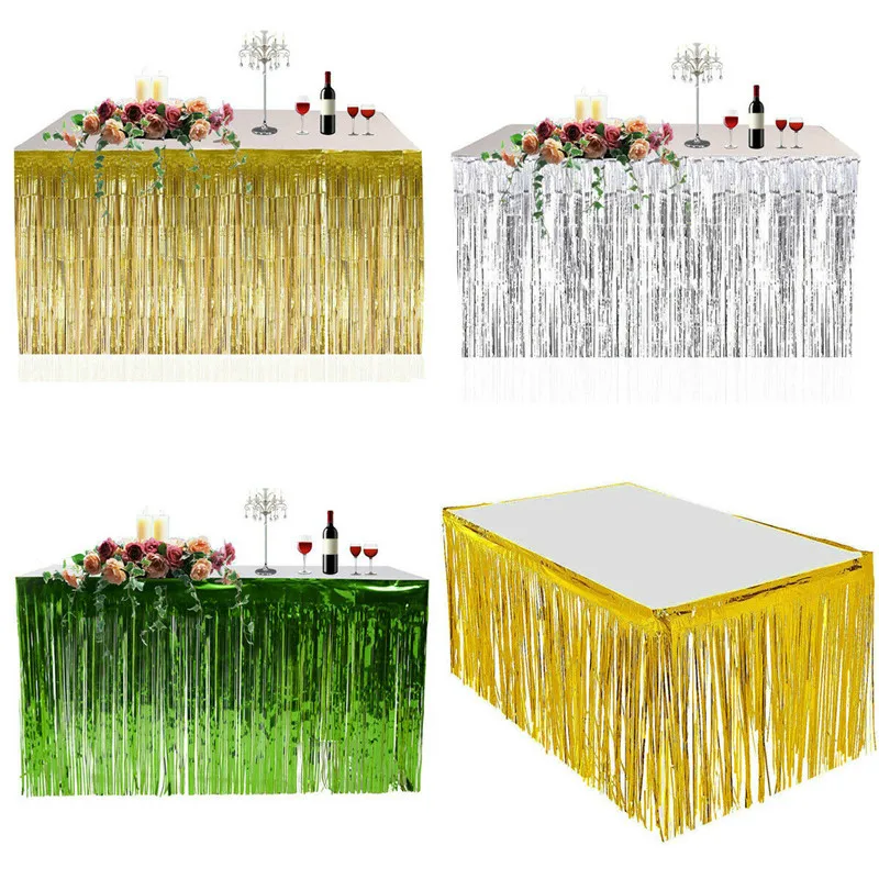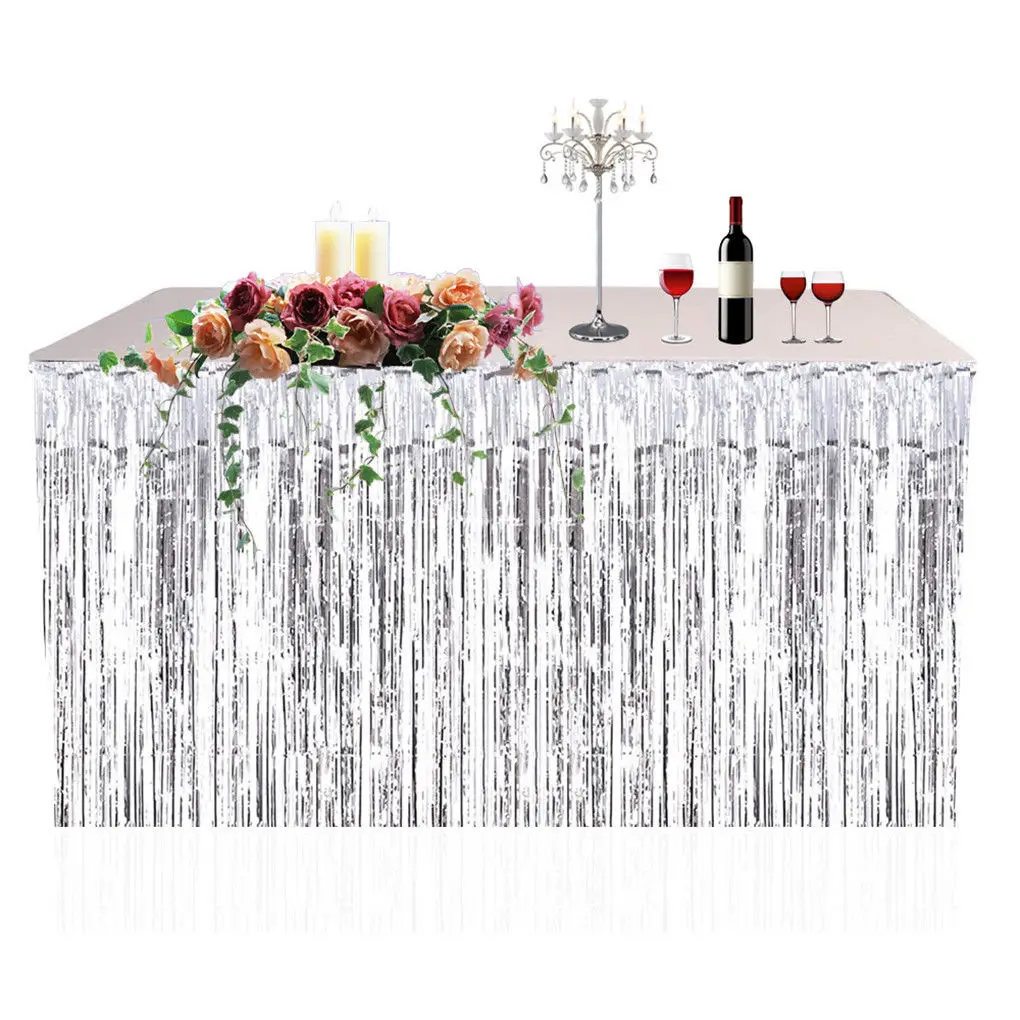 Золотая фольга Fringe стол юбка металлик занавеска с блестками серебристого цвета гирлянды с кисточками в деревенском стиле Свадебные украшения на день рождения вечерние Декор