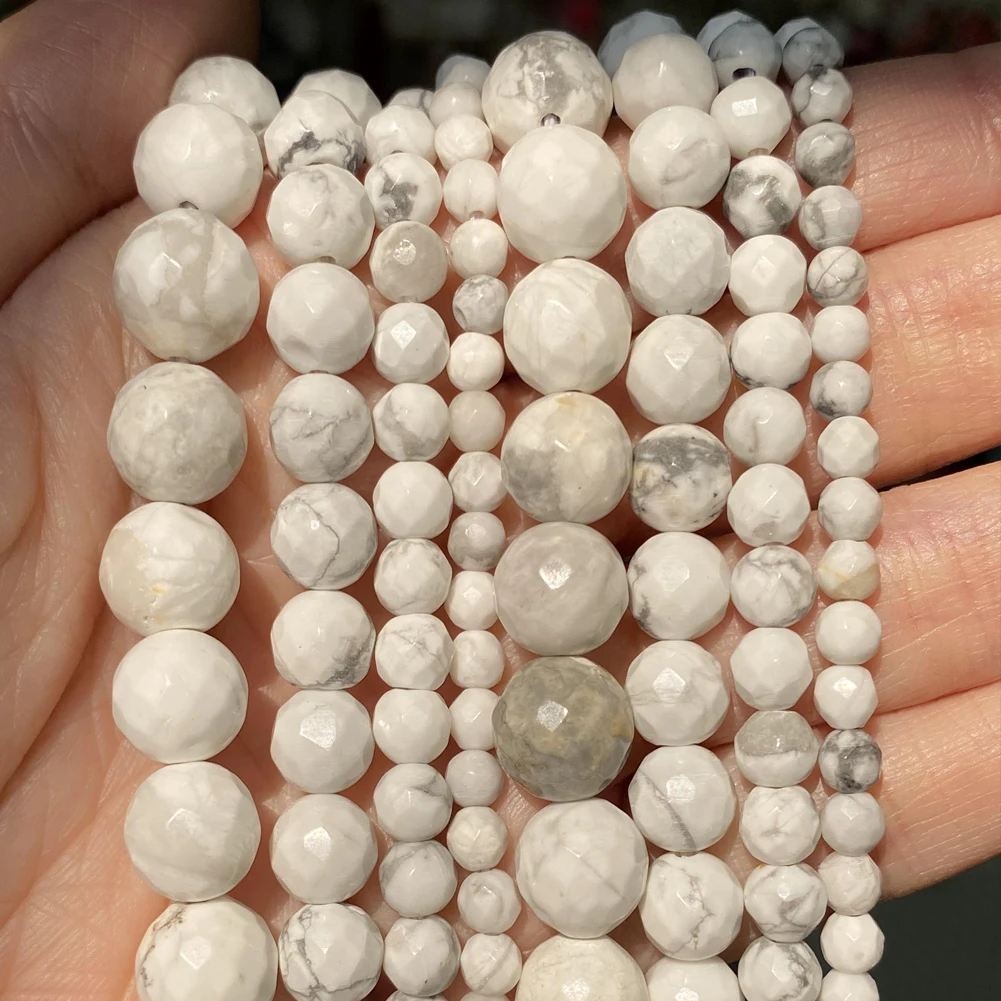 Натуральный граненый белый бирюзовый камень Howlite бусины 4 6 8 10 мм круглые бусины для самостоятельного изготовления ювелирных изделий Браслет Подвески Аксессуары