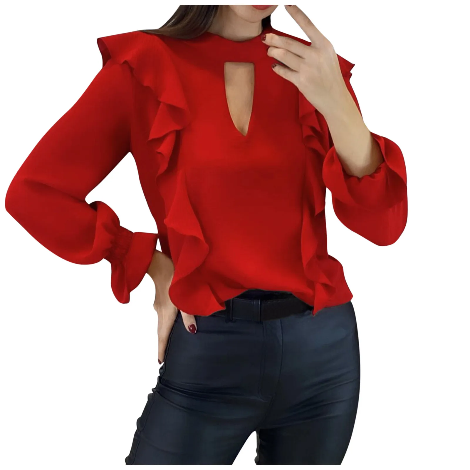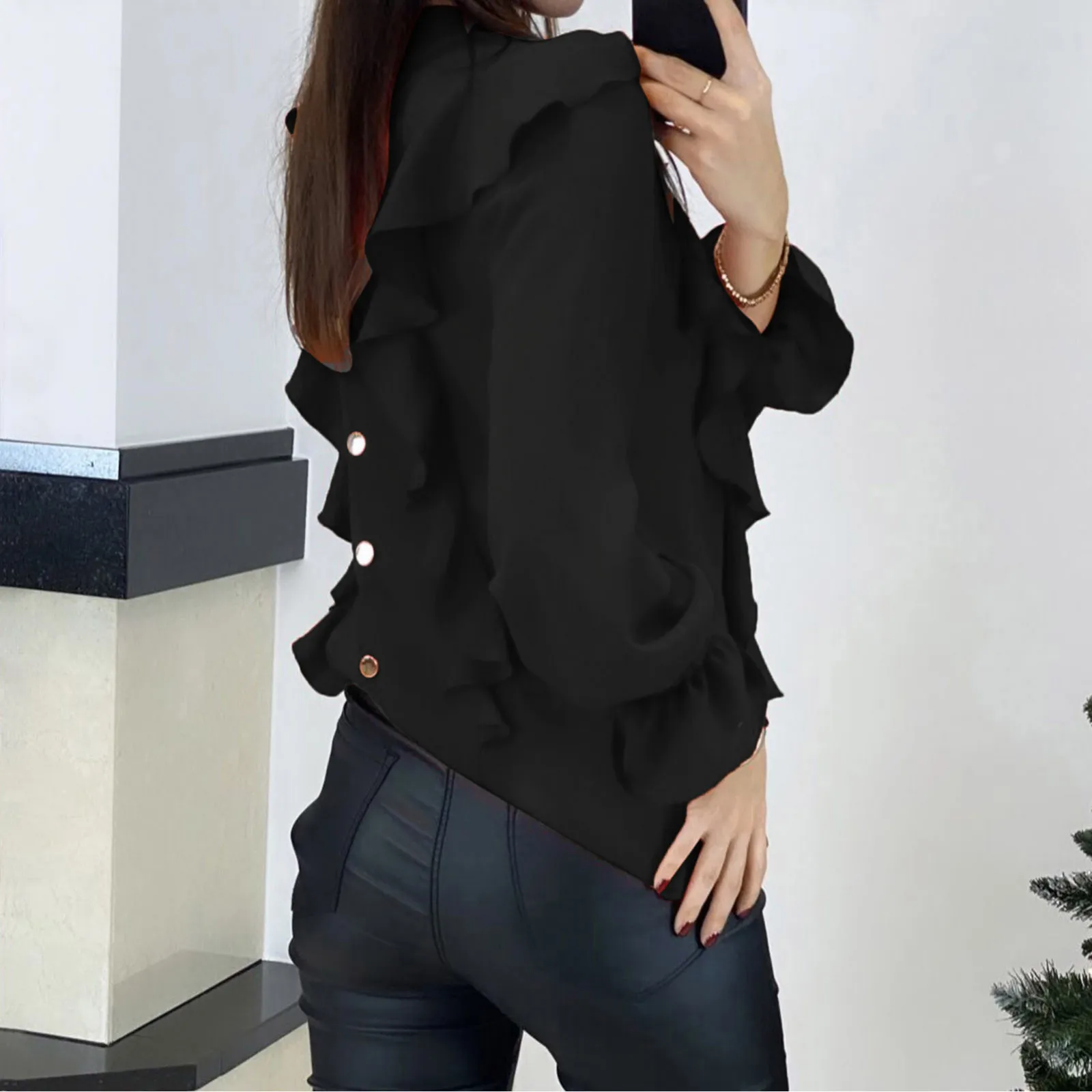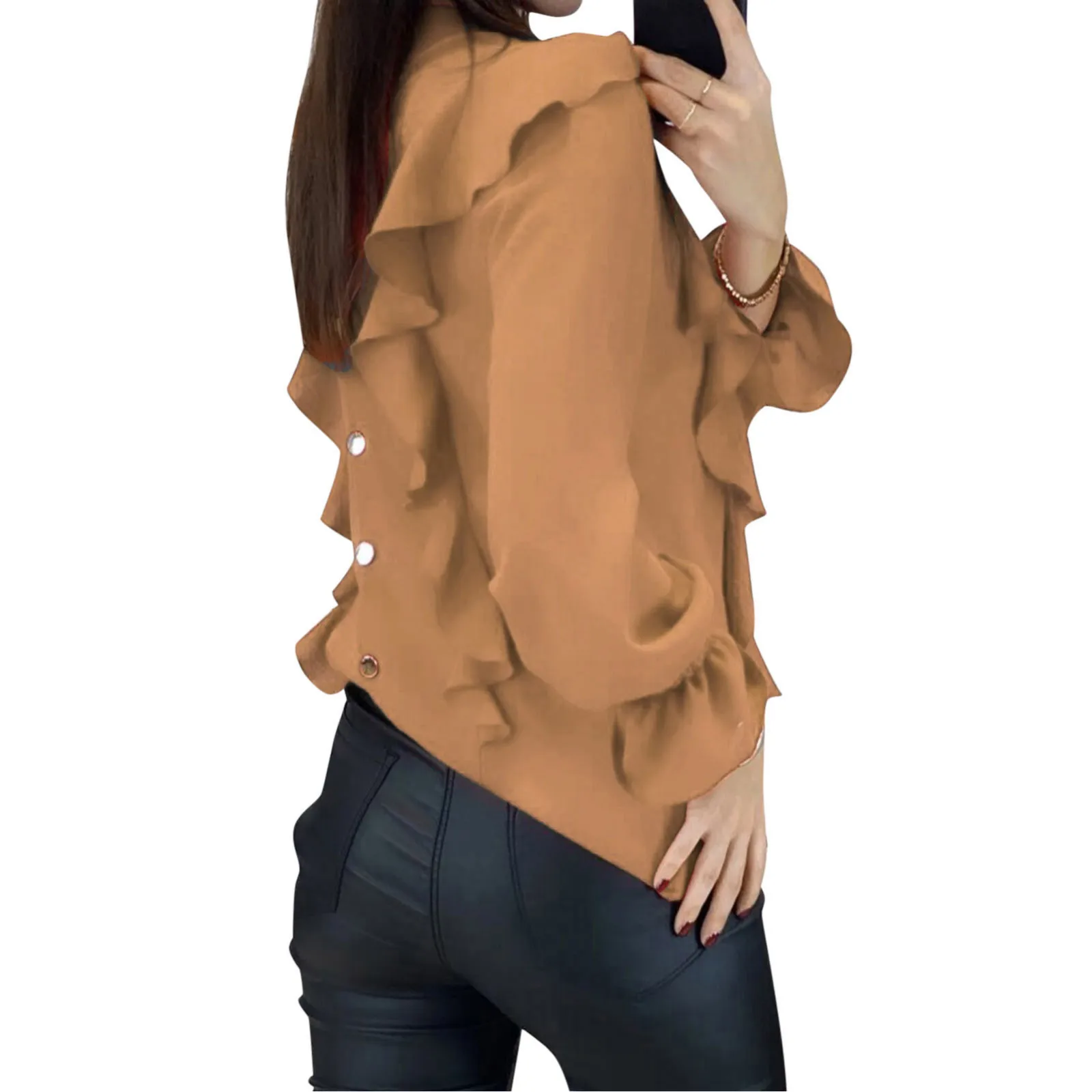 40 # пикантная Женская Рубашка элегантное платье для женщин с v-образным вырезом, блузы с оборками и длинным рукавом пуговицы рубашки для мальчиков Повседневные Вечерние женские Рубашка Женская Свободная блузка