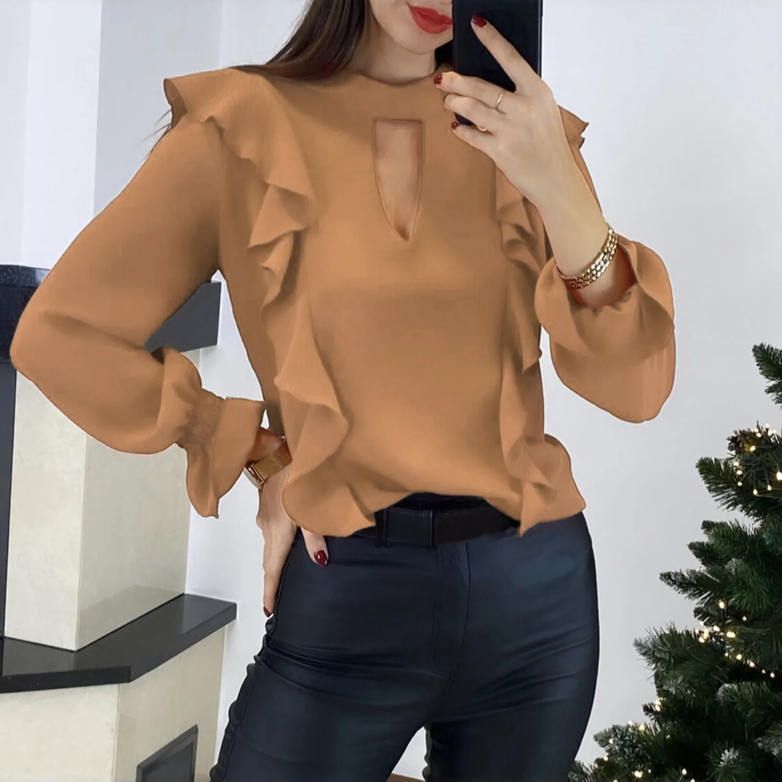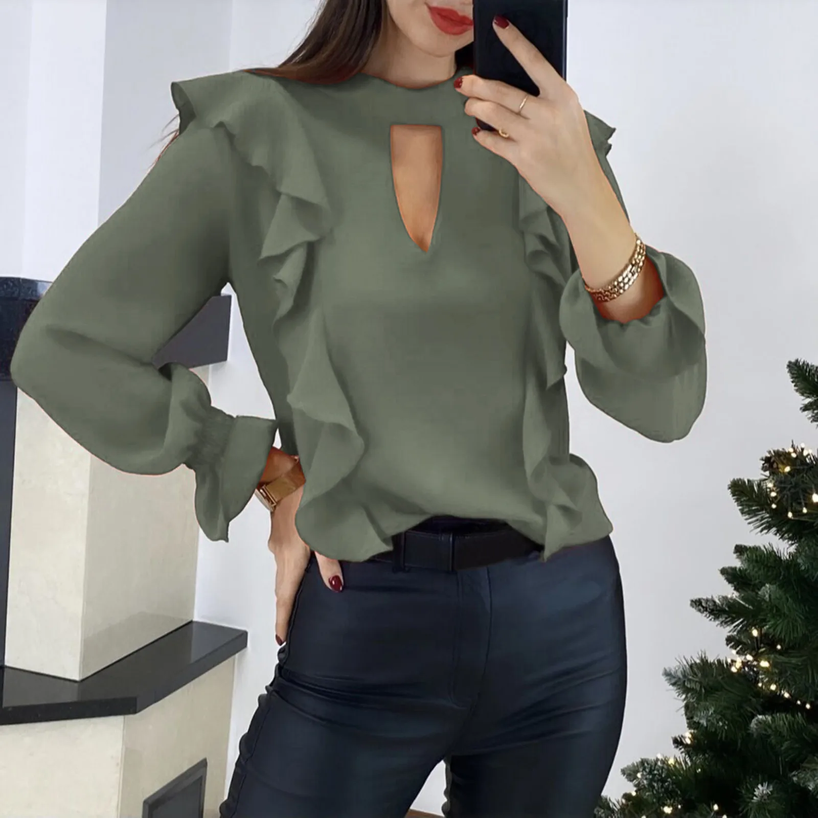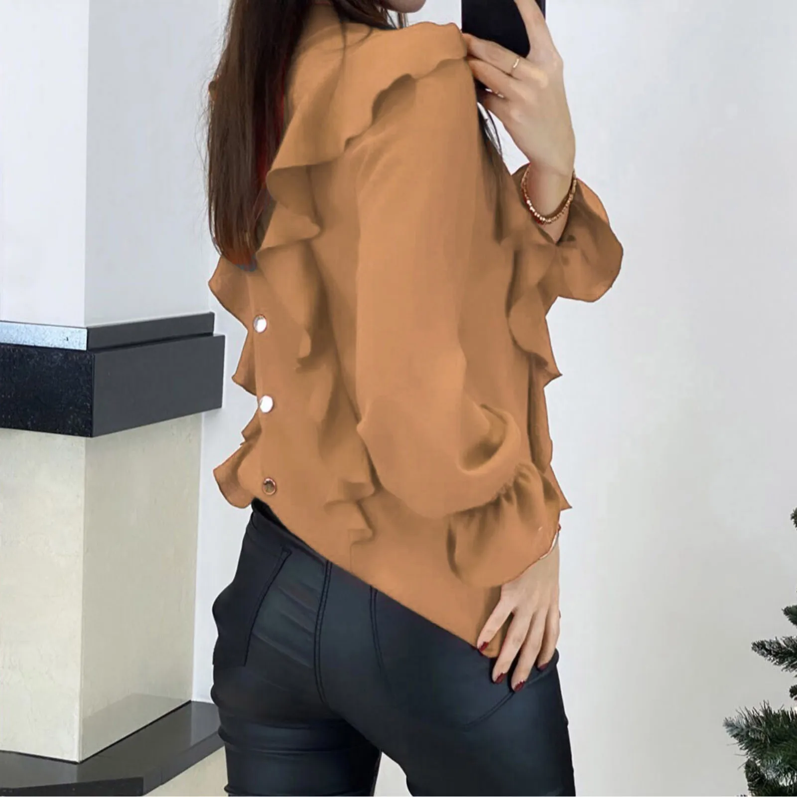 40 # пикантная Женская Рубашка элегантное платье для женщин с v-образным вырезом, блузы с оборками и длинным рукавом пуговицы рубашки для мальчиков Повседневные Вечерние женские Рубашка Женская Свободная блузка