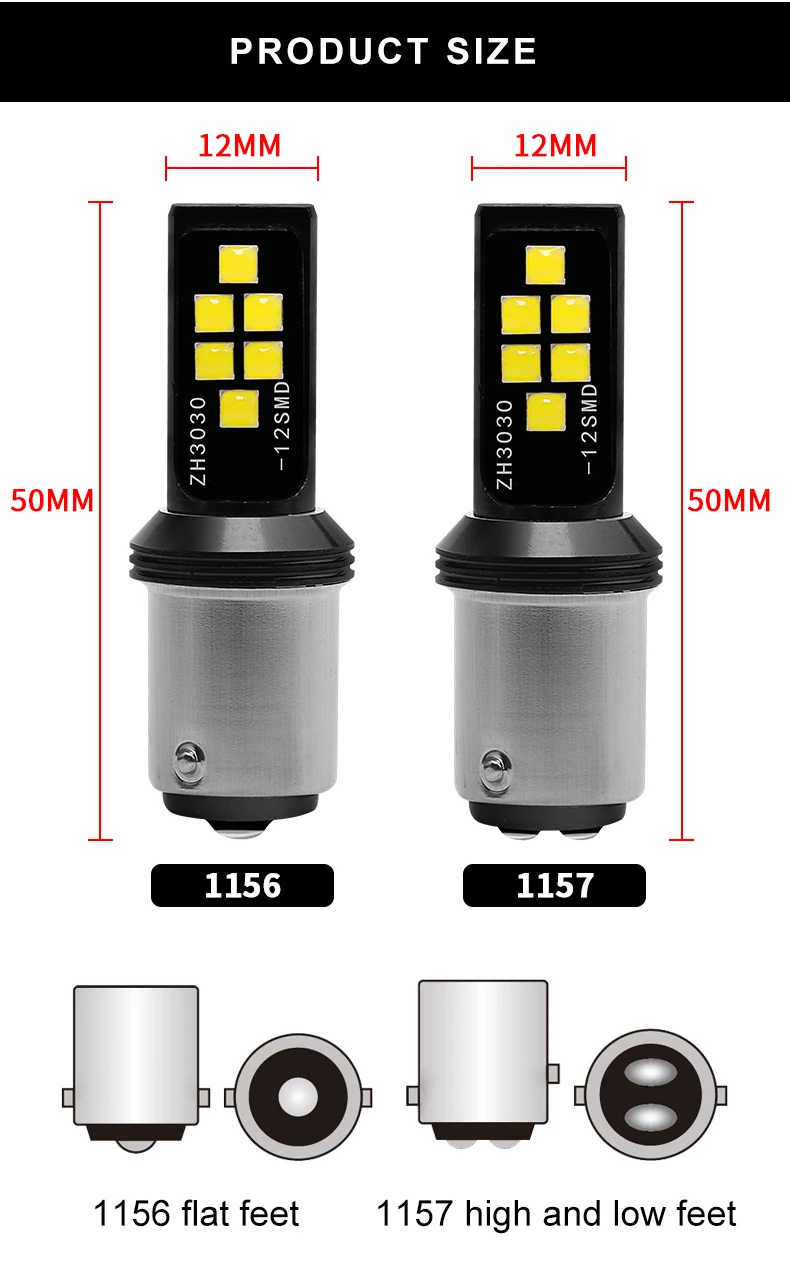 -Напряжение: 12 В-Мощность: 4 Вт (применимо к 5 Вт Светодиодный светильник)-Цвет: белый, янтарный, красный-Разъем: (T20 7443) / (T25 3157) /( 1157 BAY15D) /(1156 BA15S)-Применение: светильник сигнала поворота, тормозной светильник, светильник заднего хода и т. Д.Характеристика:-Высокое качество/прочный/супер яркий.-Высокий яркий светильник SMD 3d-3030.-Встроенный декодирующий привод, подходит 98% модели автомобиля, подключи и работай