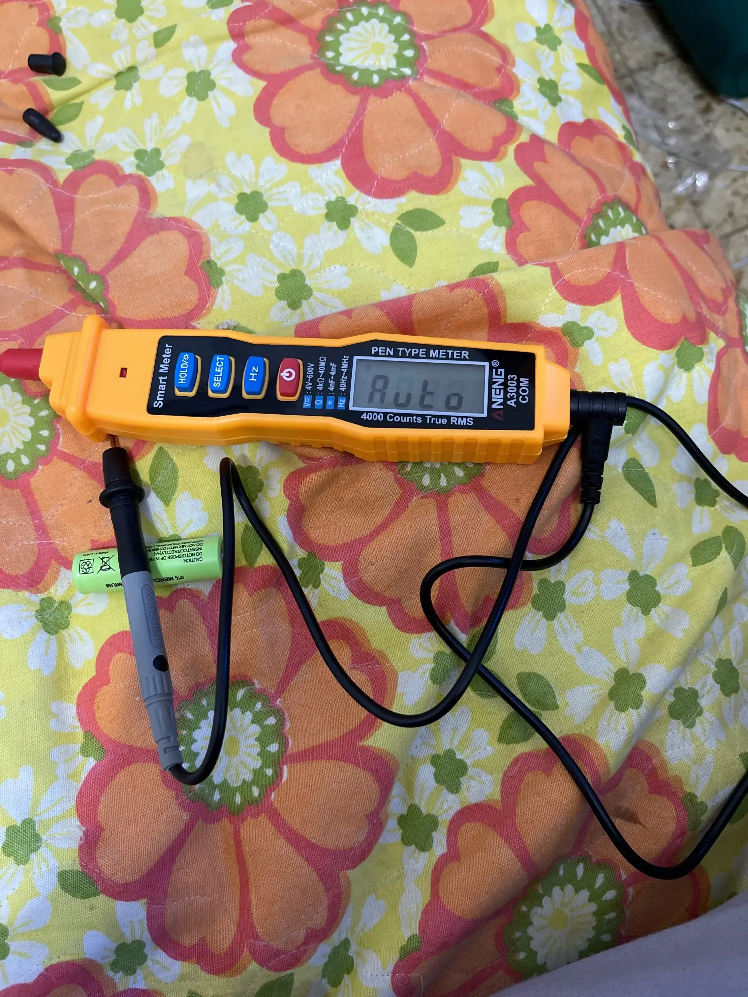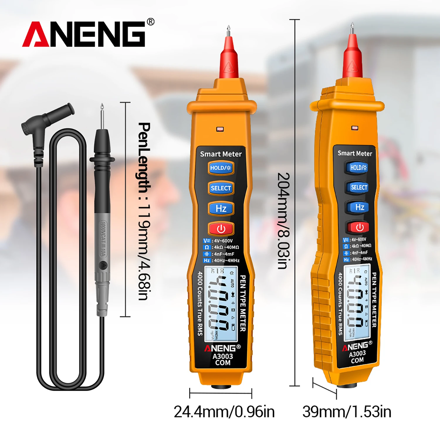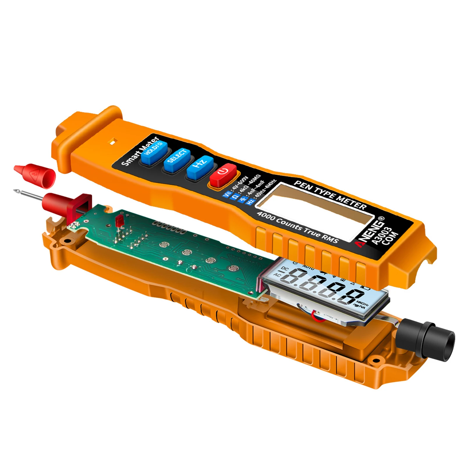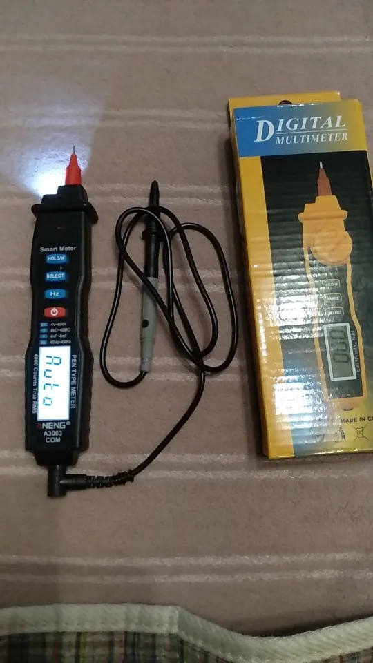 ANENG A3003 4000 отсчетов Ручка Тип Цифровой мультиметр с NCV, AC/DC вольтметр, Омметр, сопротивление, емкость, частота и Тест линии, цифровой мультиметр-ручка также с функцией EF и функцией включения-выключения Buzzer Detection поддерживает Удержание данных. Большой ЖК-экран с поддержкой функции автоматического отключения для энергосбережения; Buit-in flash светильник + звуковой сигнал и светильник, более удобный тест и чтение.Особенности:Многофункциональный мультиметр-этот цифровой мультиметр ручного типа может выполнять измерение напряжения переменного/постоянного тока 4 в-600 В, сопротивление от 4kΩ - 40MΩ, емкость, Частотный тест и обнаружение звукового сигнала ВКЛ-ВЫКЛ, обнаружение пожара и т. Д.Удобное использование -- с 4000 отсчетов большая Подсветка ЖК-экрана и функция фонарика, значение можно четко читать даже в темных местах. Функция удержания данных, вы можете сохранить данные одним щелчком мыши, удобно для чтения данных.Бесконтактное измерение-цифровой мультиметр поддерживает Бесконтактное Обнаружение напряжения NCV и может различать нулевую линию и пожарный провод, чтобы избежать риска поражения электрическим током. Безопасный и надежный.Автоматическое выключение и звуковая сигнализация-мультиметр ручки имеет функцию автоматического отключения, которая автоматически отключится, если нет операции для минут, низкое энергопотребление. Звуковой сигнал + светильник облегчает измерение.Легко носить с собой-компактный дизайн ручки для удобного использования одной рукой, легко носить с собой и работать. Он очень подходит для дома, школы, лаборатории, фабрики и других применений.Спецификация:Бренд: ANENGМодель: A3003Максимальный дисплей: 4000 единицЦвет: желтый/черный (опционально)Материал: АБС + латунь + ПВХИсточник питания: 2 * AAA (не входит в комплект)Сигнализация: звуковой + светильникАвтоматическое выключение: ДаЖК-экран: с подсветкойХранение данных: ДаФункция EF: ДаФункция сохранения даты: ДаФункция зуммера: Да