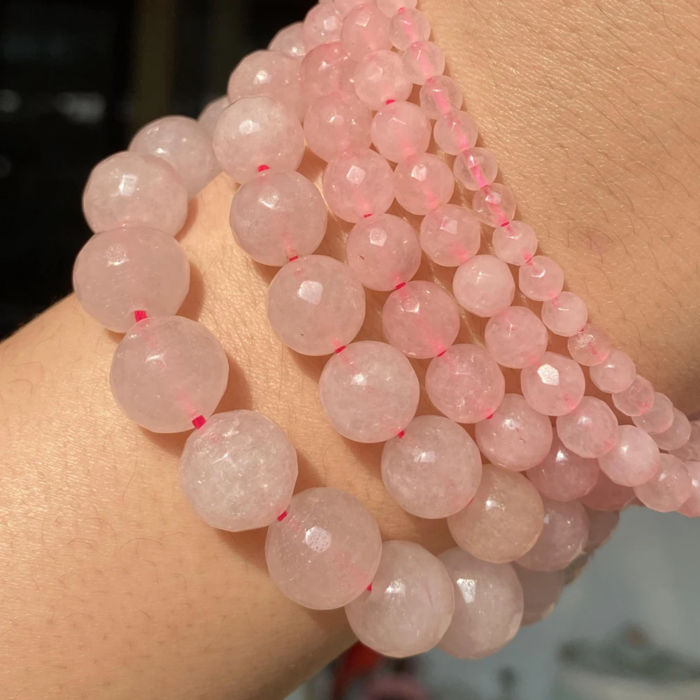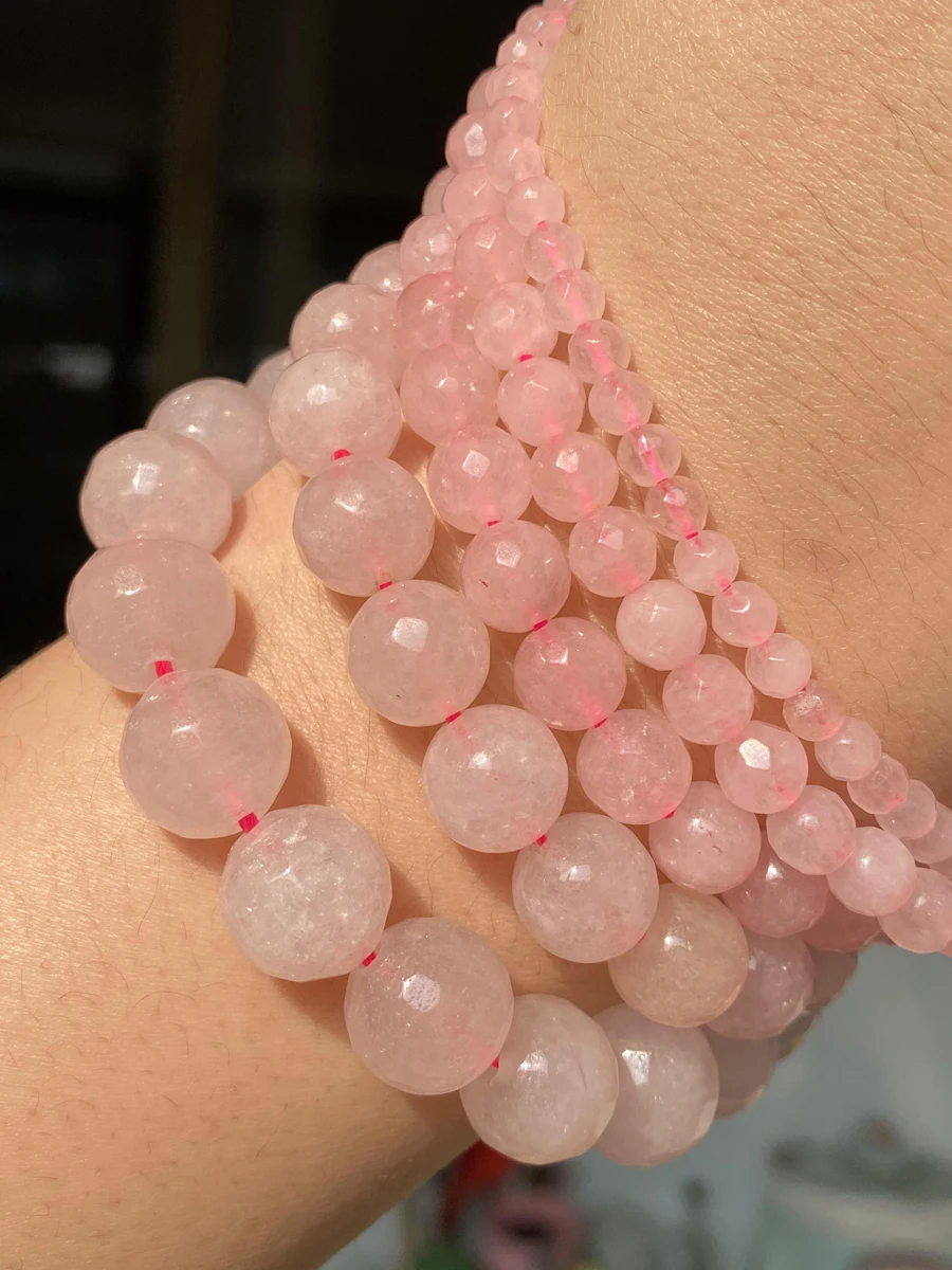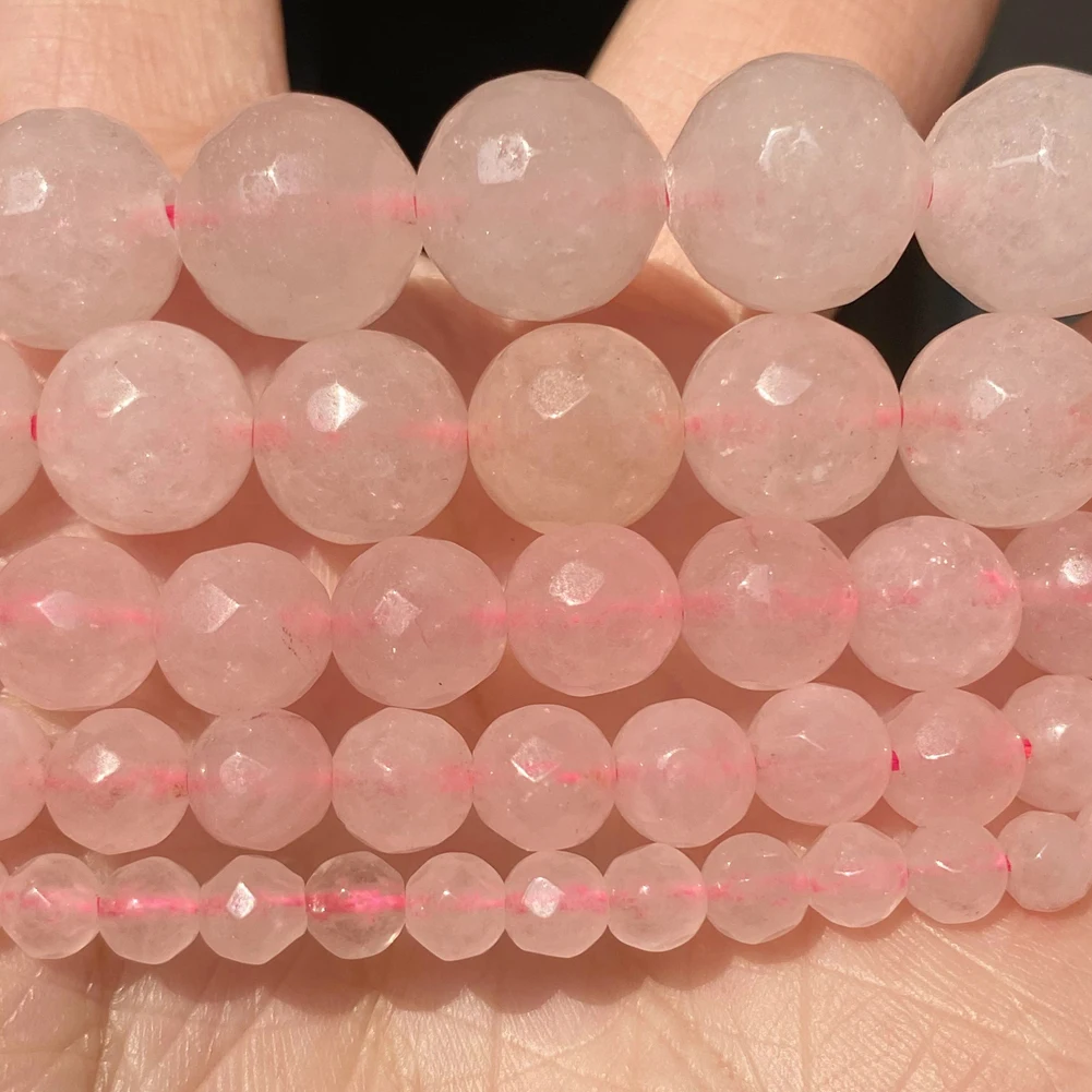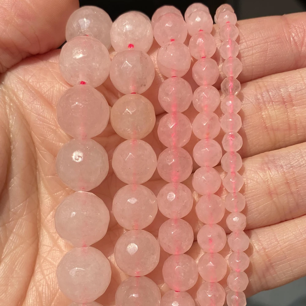 Граненые розовые кварцовые круглые бусины с натуральным камнем для самостоятельного изготовления ювелирных изделий, очаровательные аксессуары для браслетов 4 6 8 10 12 мм