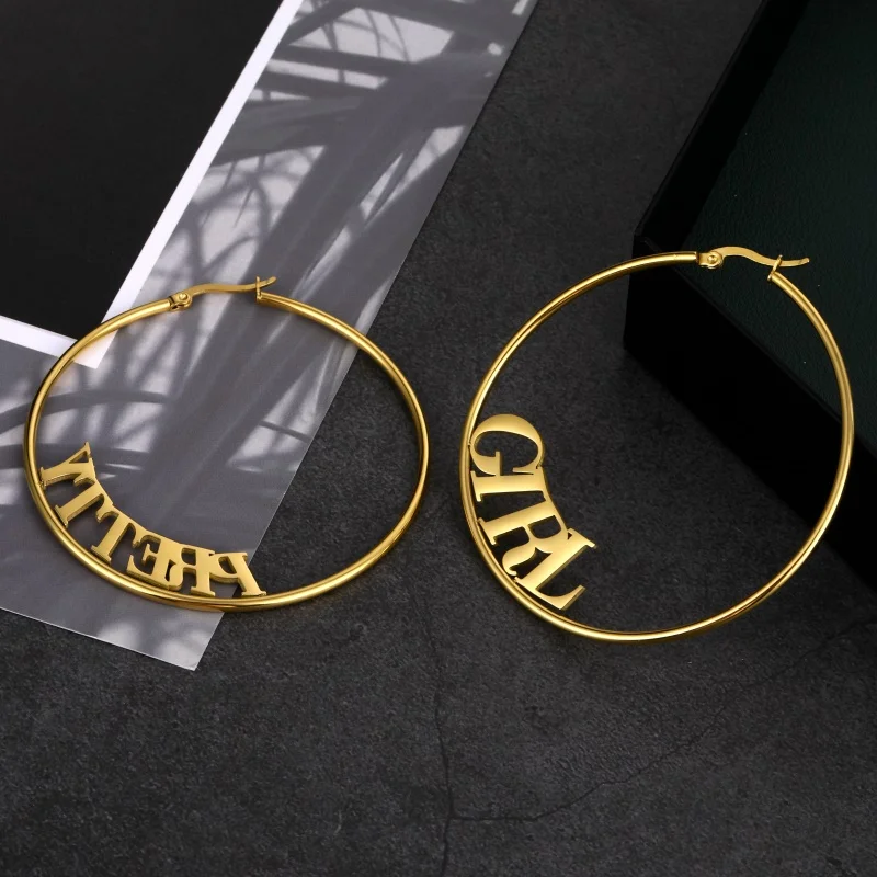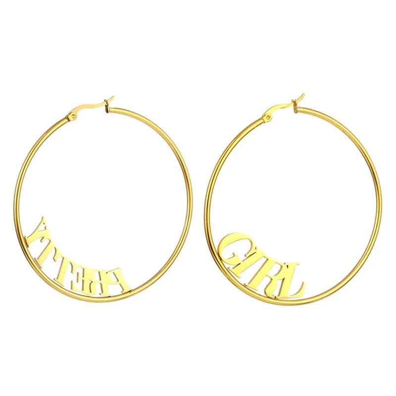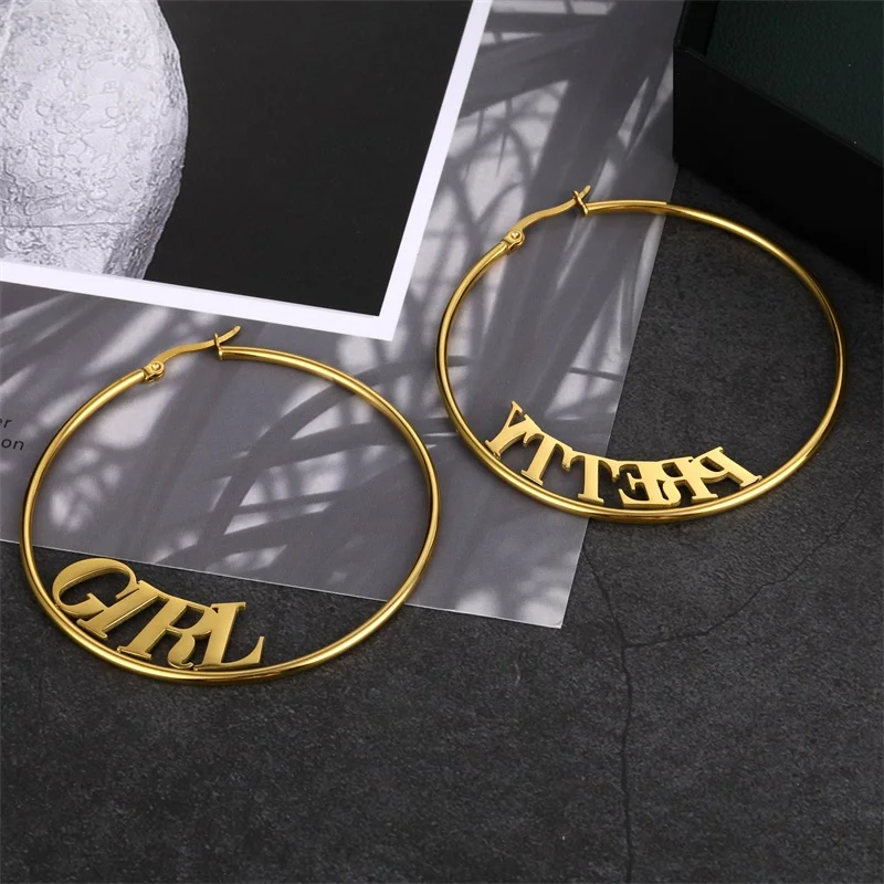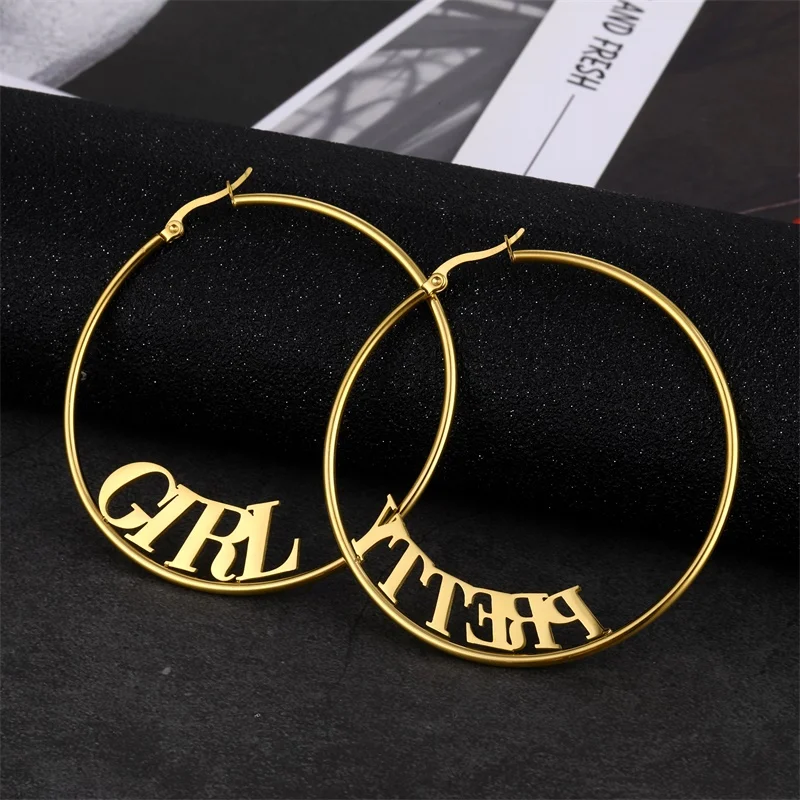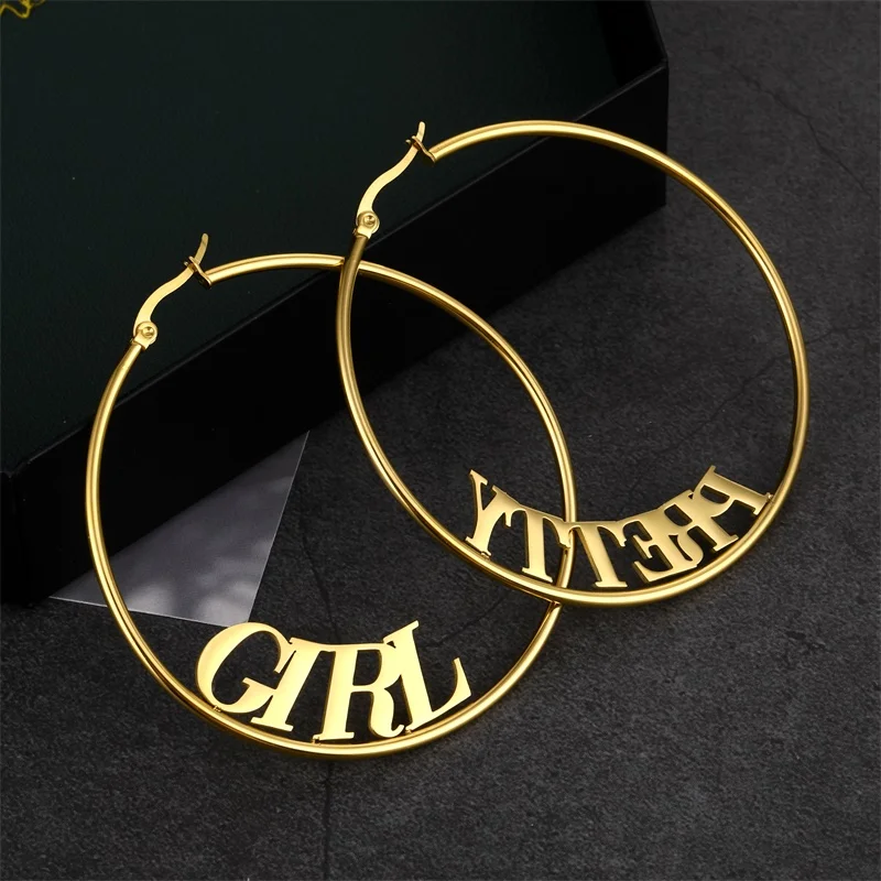 Ручной работы с именем из нержавеющей стали, серьги-кольца для женщ...