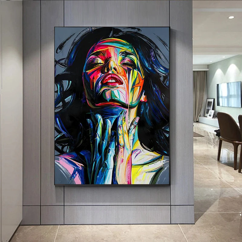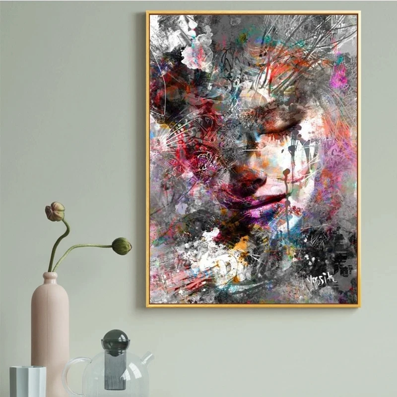 Абстрактная женщина лицо граффити уличное искусство холст живопись плакаты и принты поп стена искусство для гостиной Декор без рамки