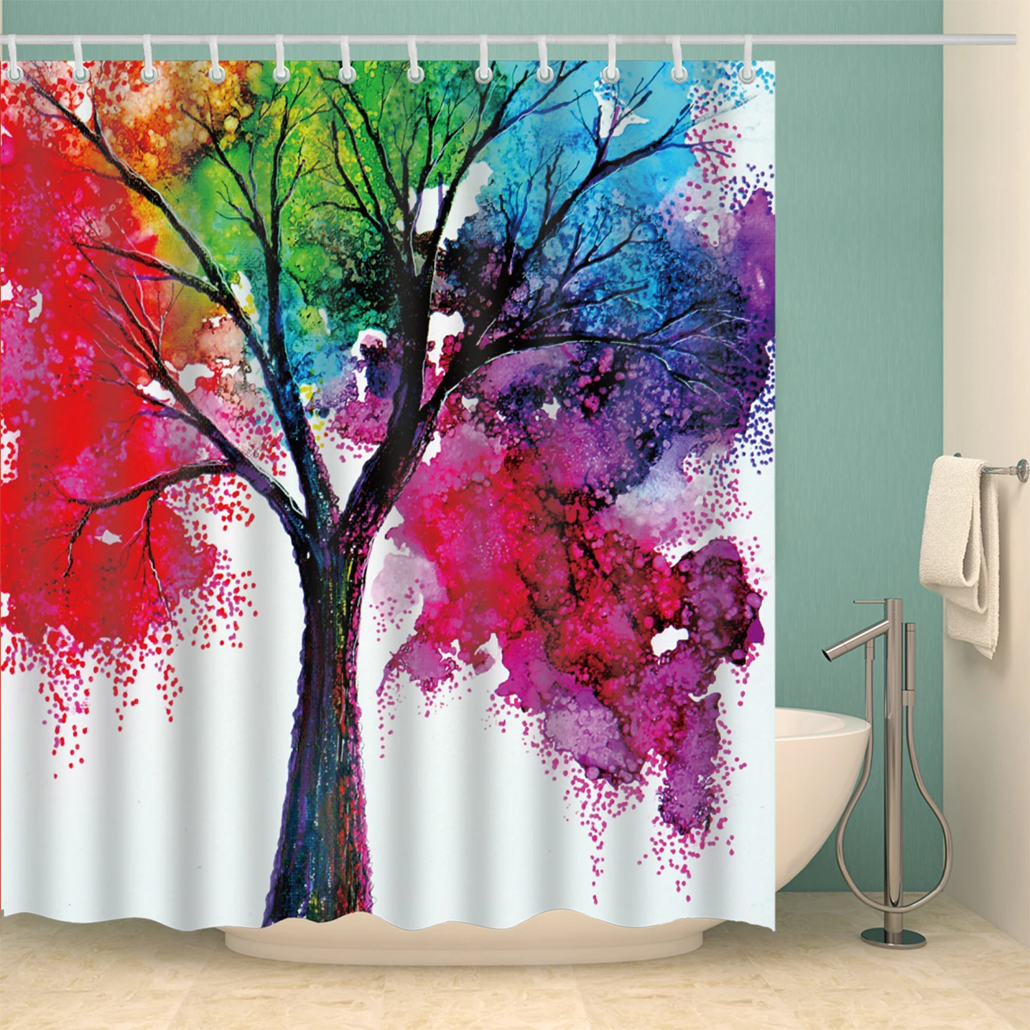 Занавеска для душа с красочными деревьями, занавеска для ванной, во...