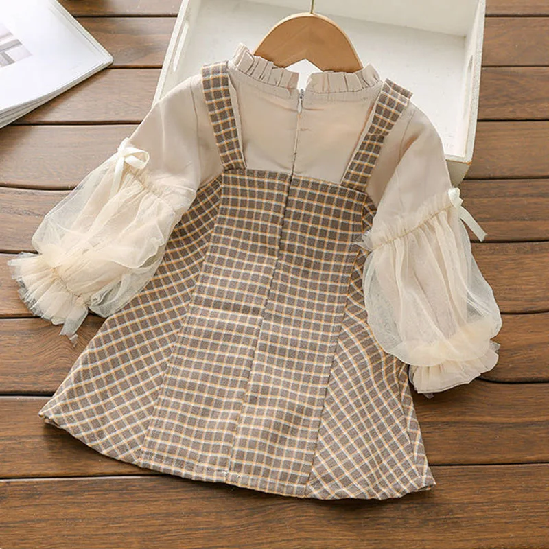 Винтажное платье в стиле пэчворк для маленьких девочек; Весеннее кружевное платье с длинными рукавами-фонариками; Милое праздничное платье для девочек