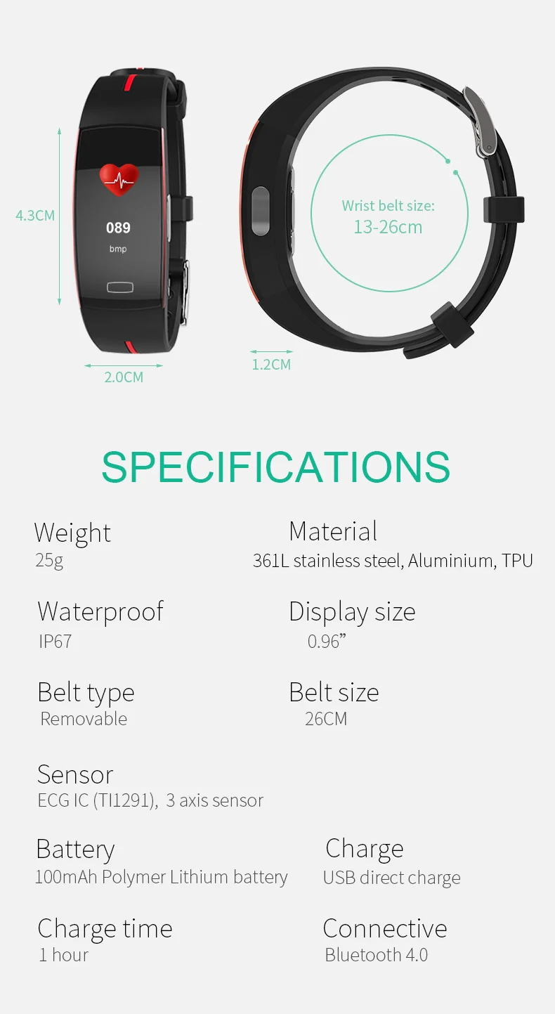 Смарт-браслет P3 plus P3plus PPG + ЭКГ Мониторинг Артериального Давления спортивный фитнес-браслет