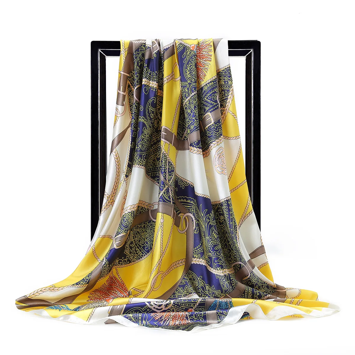 Для женщин роскошный шёлковый шарф квадратной формы 90*90 см сатин ...