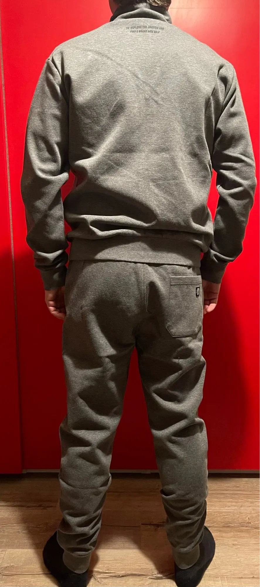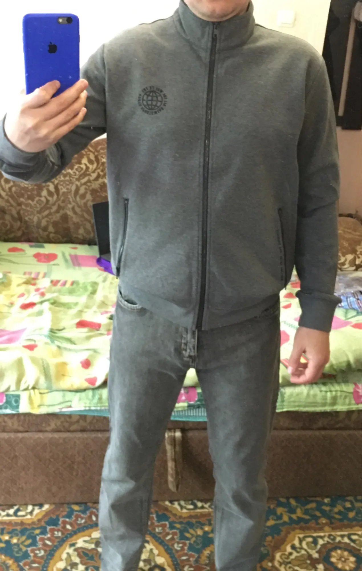 Отличная мастерка. Материал тонкий, с двух сторон гладкий, красивый тёмно-серый меланж. Пошито аккуратно, фурнитура качественная, надписи чёткие. На параметры 180/80 села отлично, свободно. Доставка 2 недели.