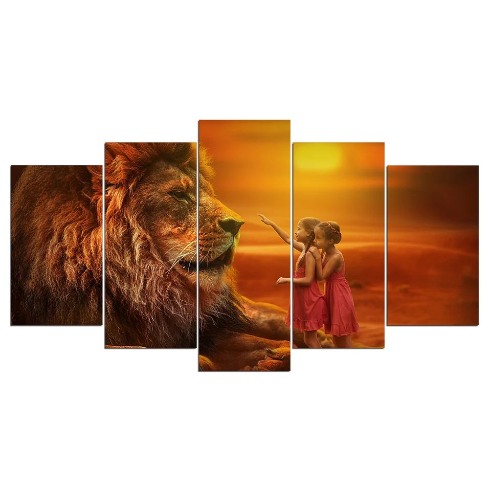 5 шт., декоративные модульные плакаты на холсте с изображением Льва на закате