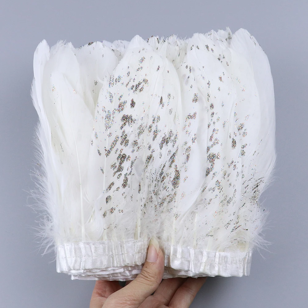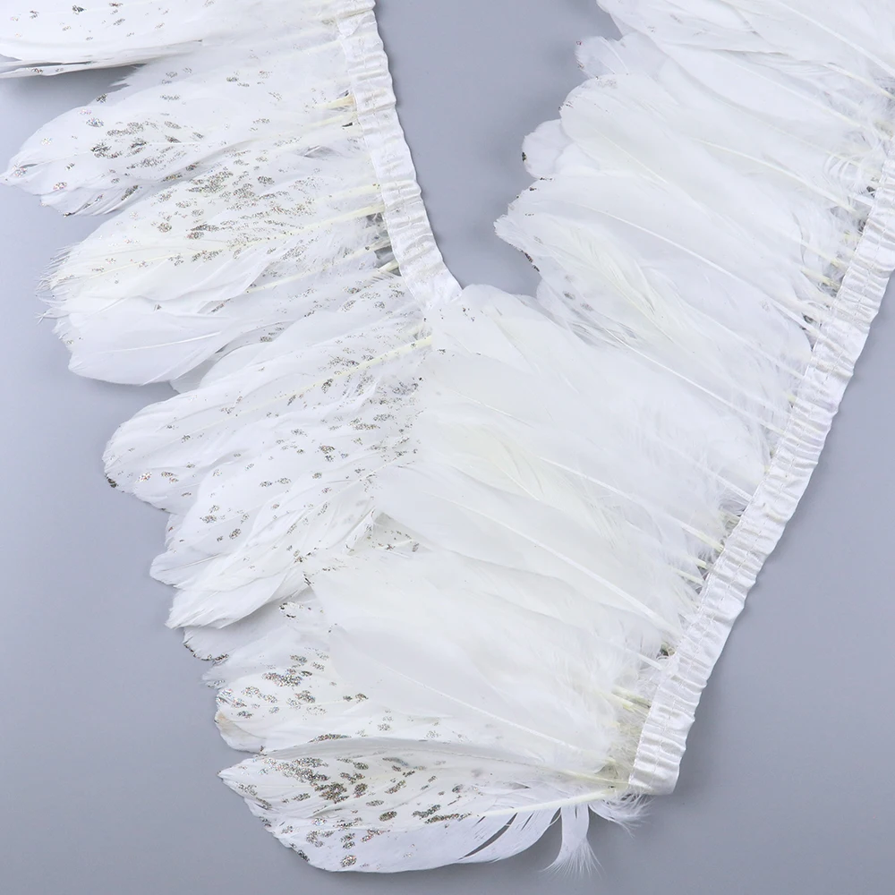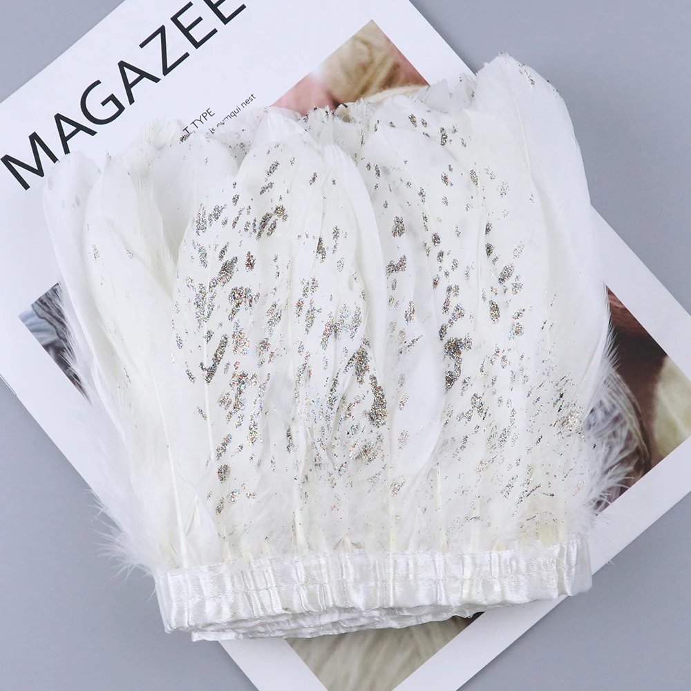 Оптовая продажа, 2 ярда, лента из белых гусиных перьев, бахрома, гусиные перья, отделка шириной 15-20 см для декоративных перьев, рукоделие, косплей