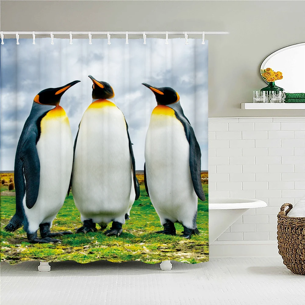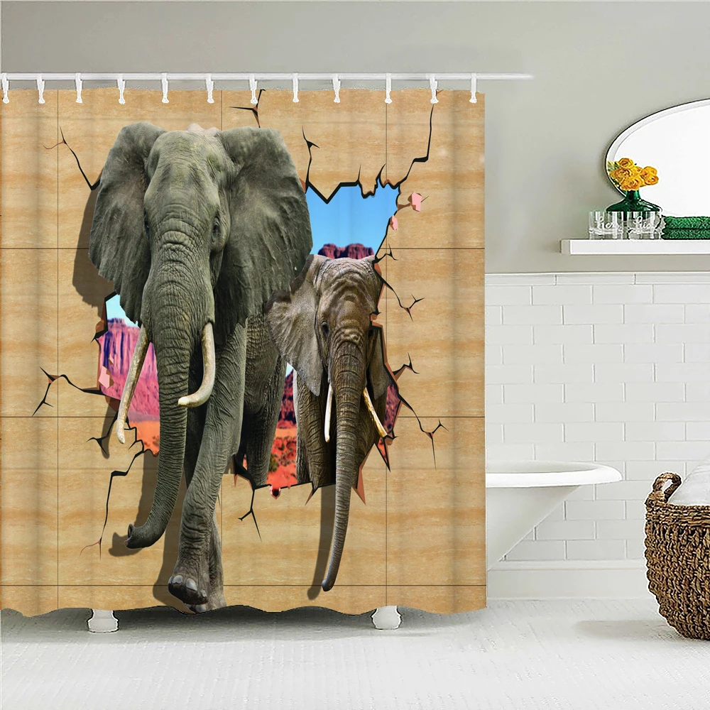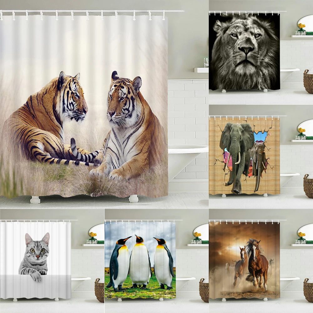 Занавески для ванной комнаты с 3d рисунком животных, водонепроницае...