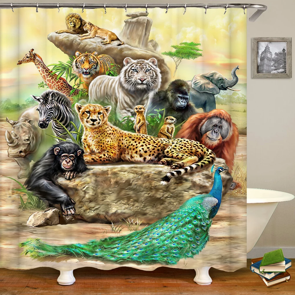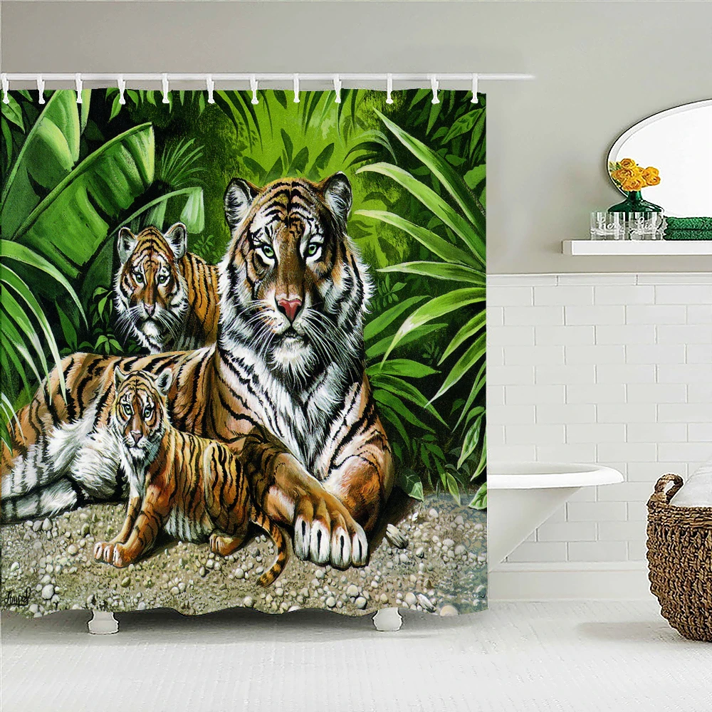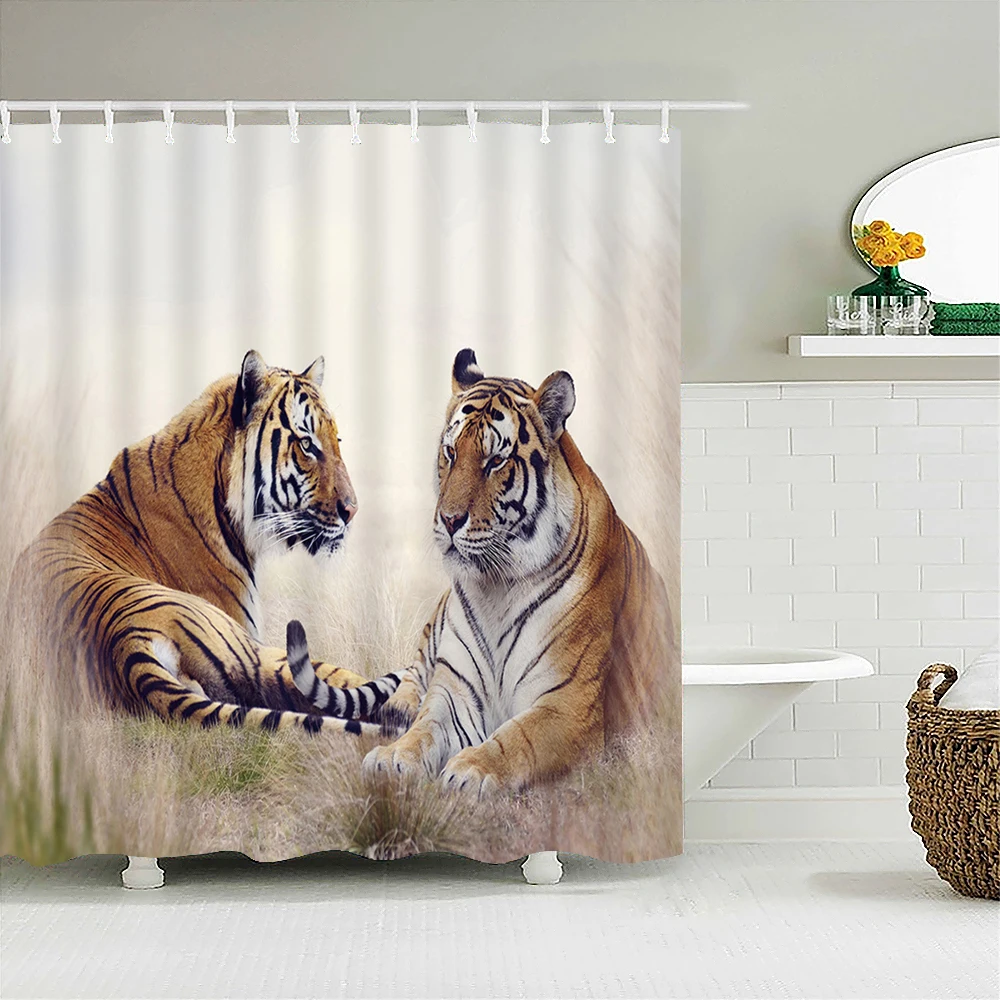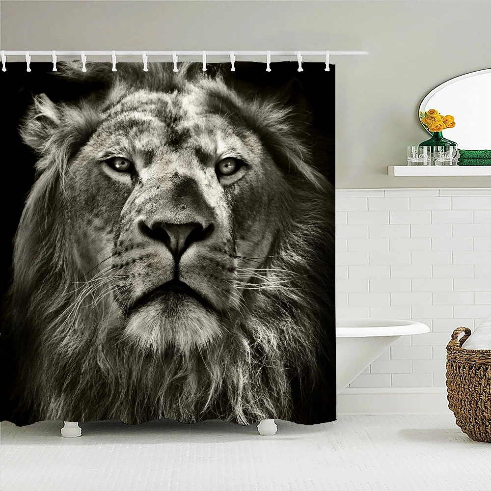 Занавеска для ванной с изображением Льва, тигра, кота, собаки