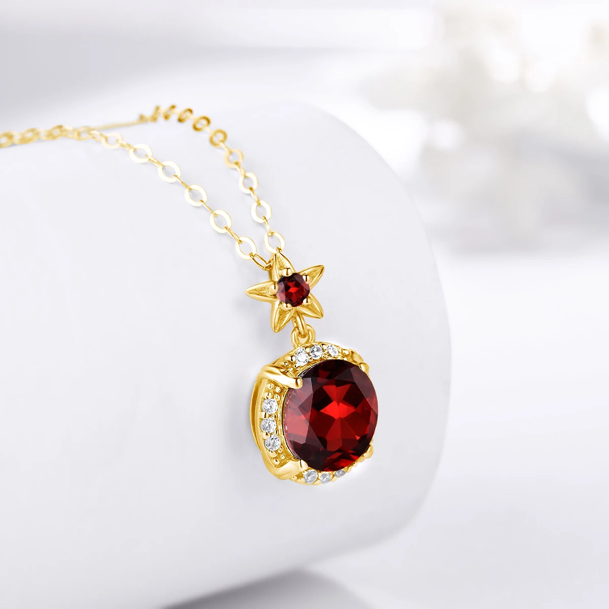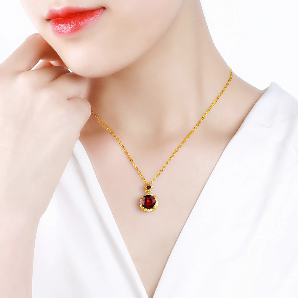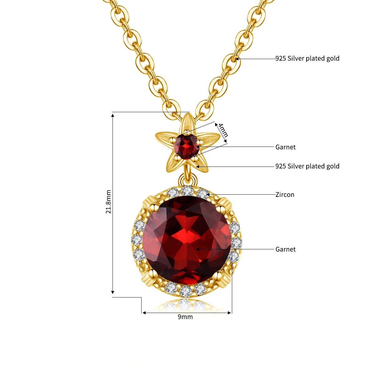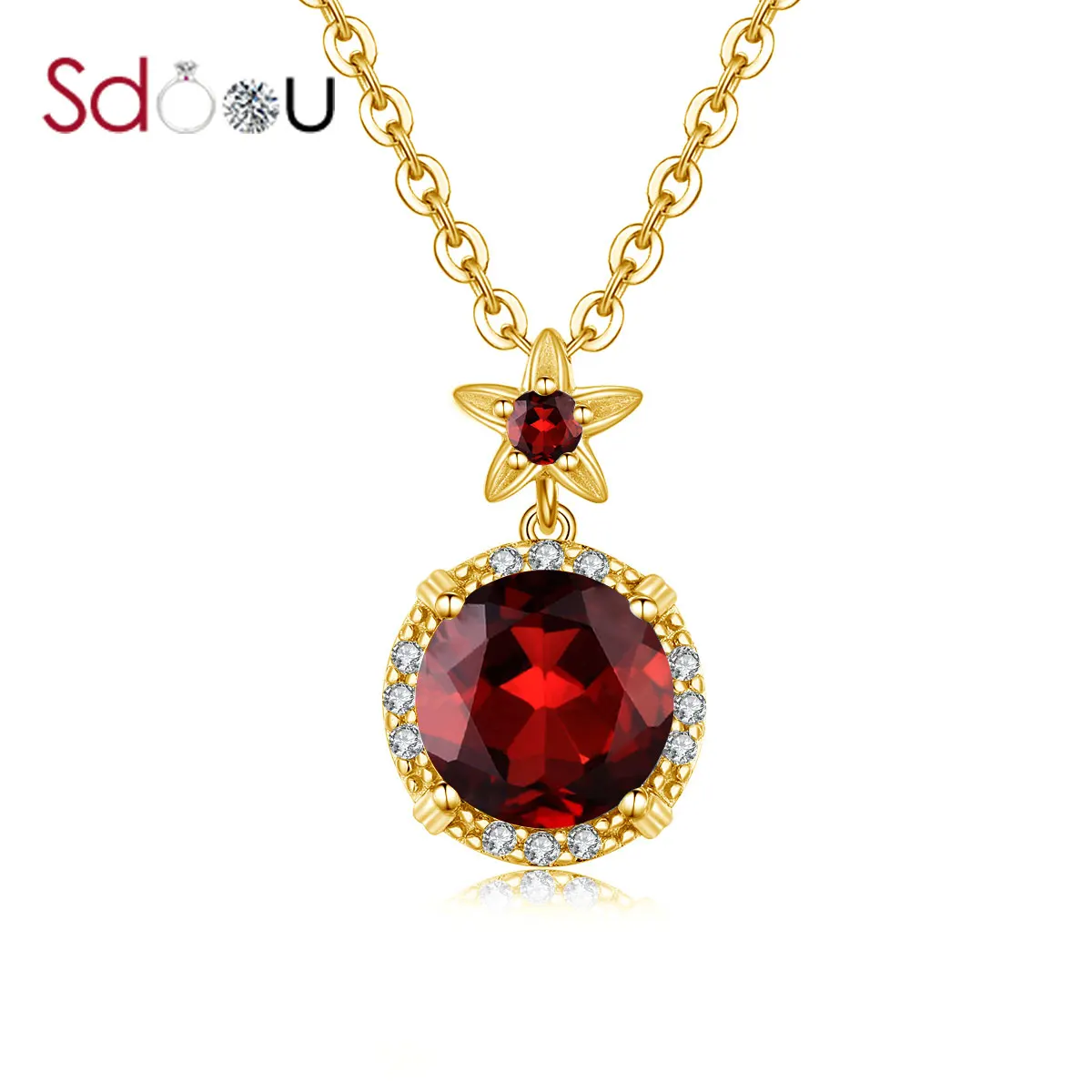SDOOU новые ювелирные изделия 14K золотой кулон для женщин красный гранат драгоценный камень Pendnat круглый цветок резной ручной работы роскошные ювелирные изделия оптом