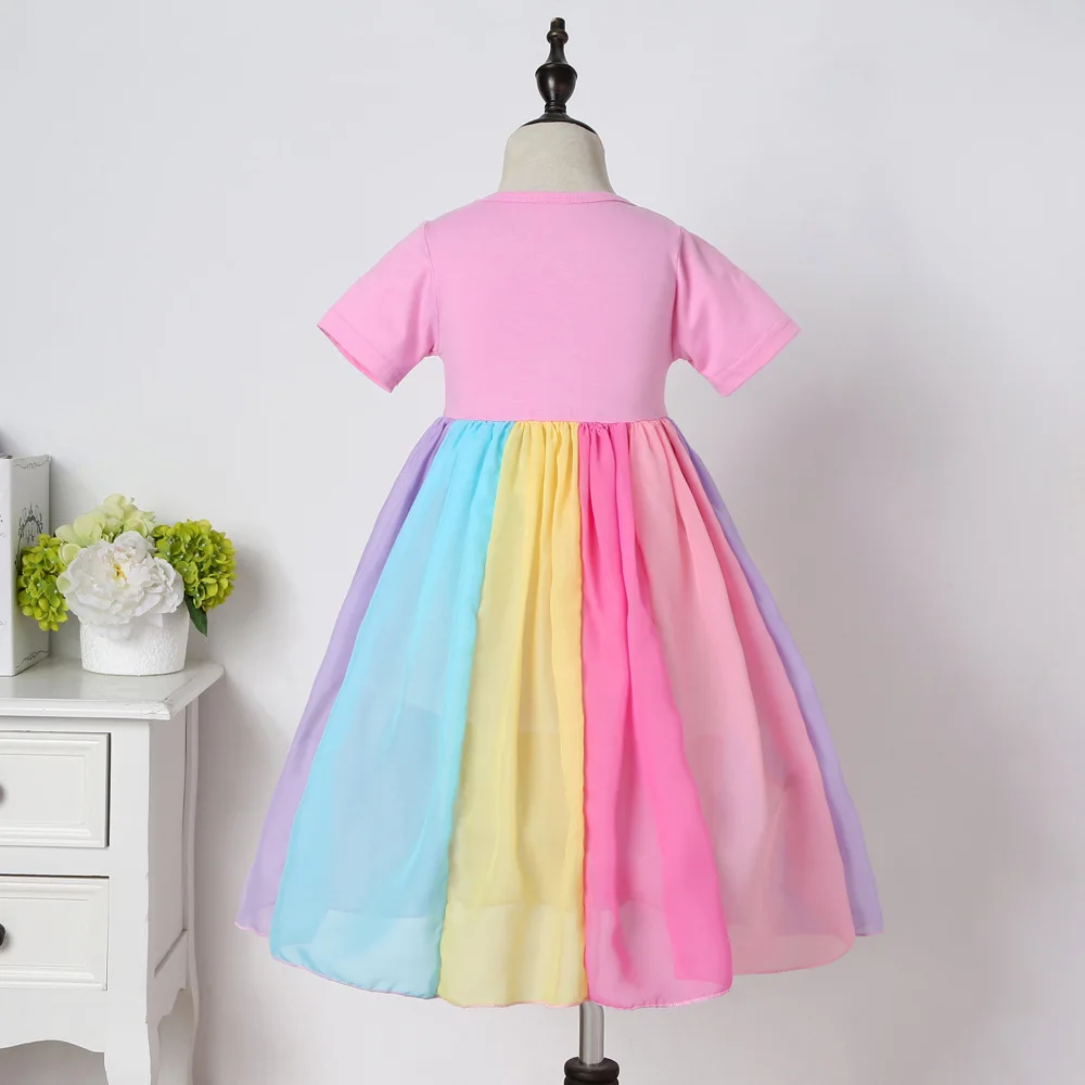 Радуга Цвет платье для девочки летнее платье с коротким рукавом для...
